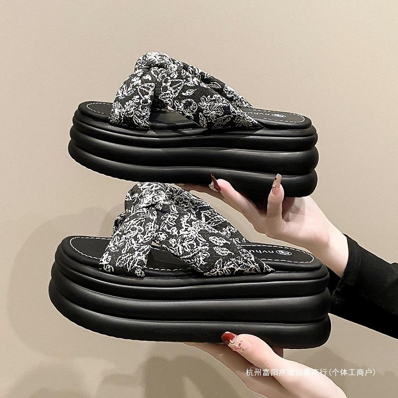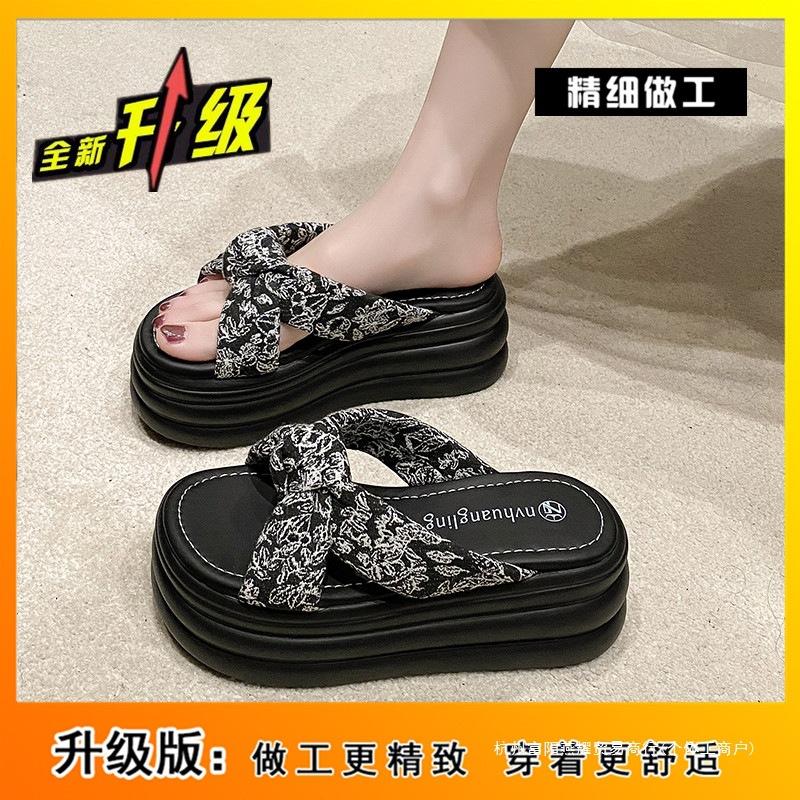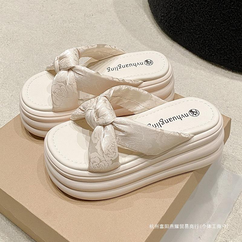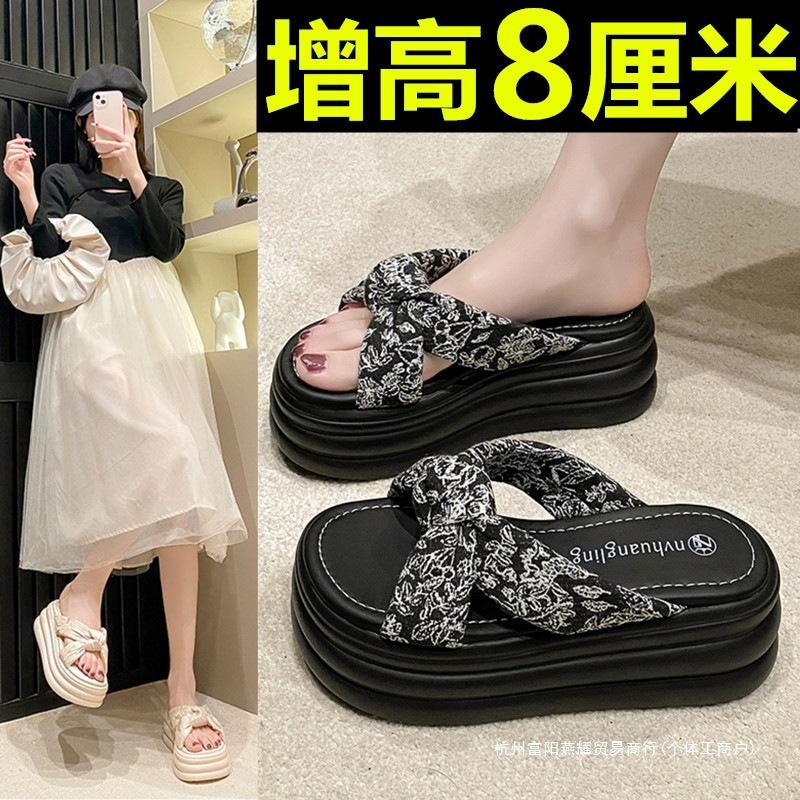 Тапочки на платформе женские летние 2025 года новые маленькие размеры 34 легкие высота 8 см маленькие пляжные туфли Санья