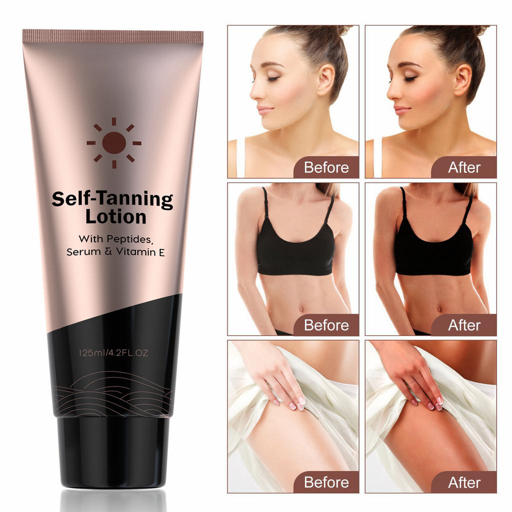 ПОЛУЧИТЕ ЗАГАР БЕЗ СОЛНЕЧНЫХ ПОВРЕЖДЕНИЙ ИЛИ ХИМИКАТОВ: Без солнечного света наш крем для автозагара может сделать кожу темной. Он от УФ-лучей и защищает кожу от ожогов и старения, даже при длительном пребывании на солнце.