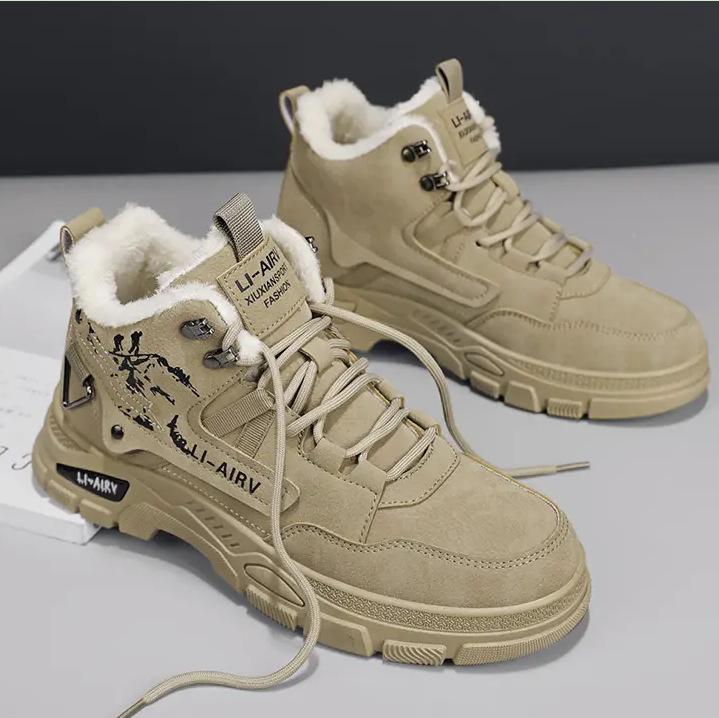 Ботинки мартин мужские зимние новые мужские на толстой подошве противоскользящие спортивные повседневные высокие рабочие с начесом утолщенные теплые хлопковые ботинки