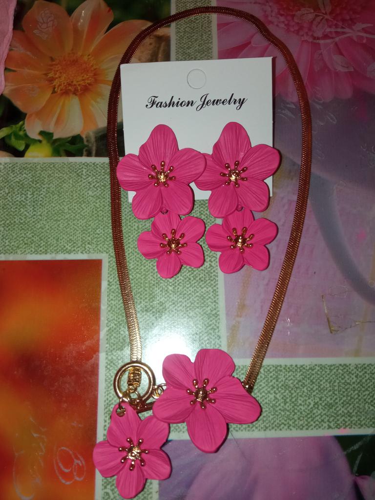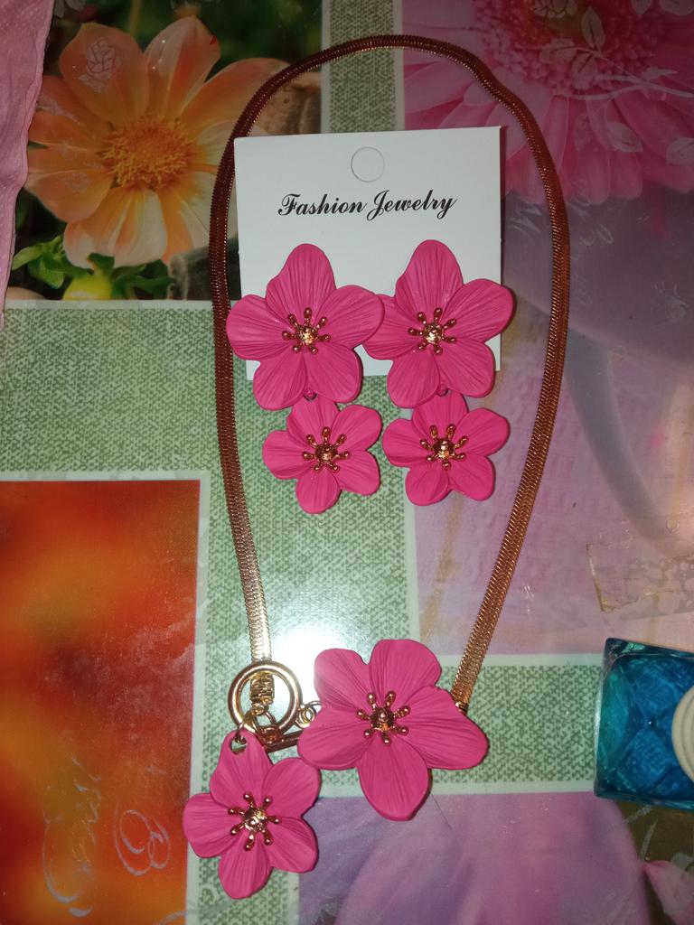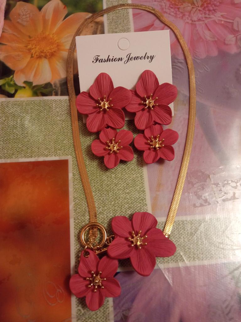 Получила за 1₽ для участия в акции 6+. Красивый набор, серьги и колье в форме цветов🌺, мой розово-красный🌹❤, цвет яркий, насыщенный, на лето🏖 будет🔥, серьги вес ощущается, в целом классный необычный набор, без повреждений, продавцу спасибо🤗, рекомендую🥰 Ранее брала подобные серьги в разных цветах, набор в первый раз увидела