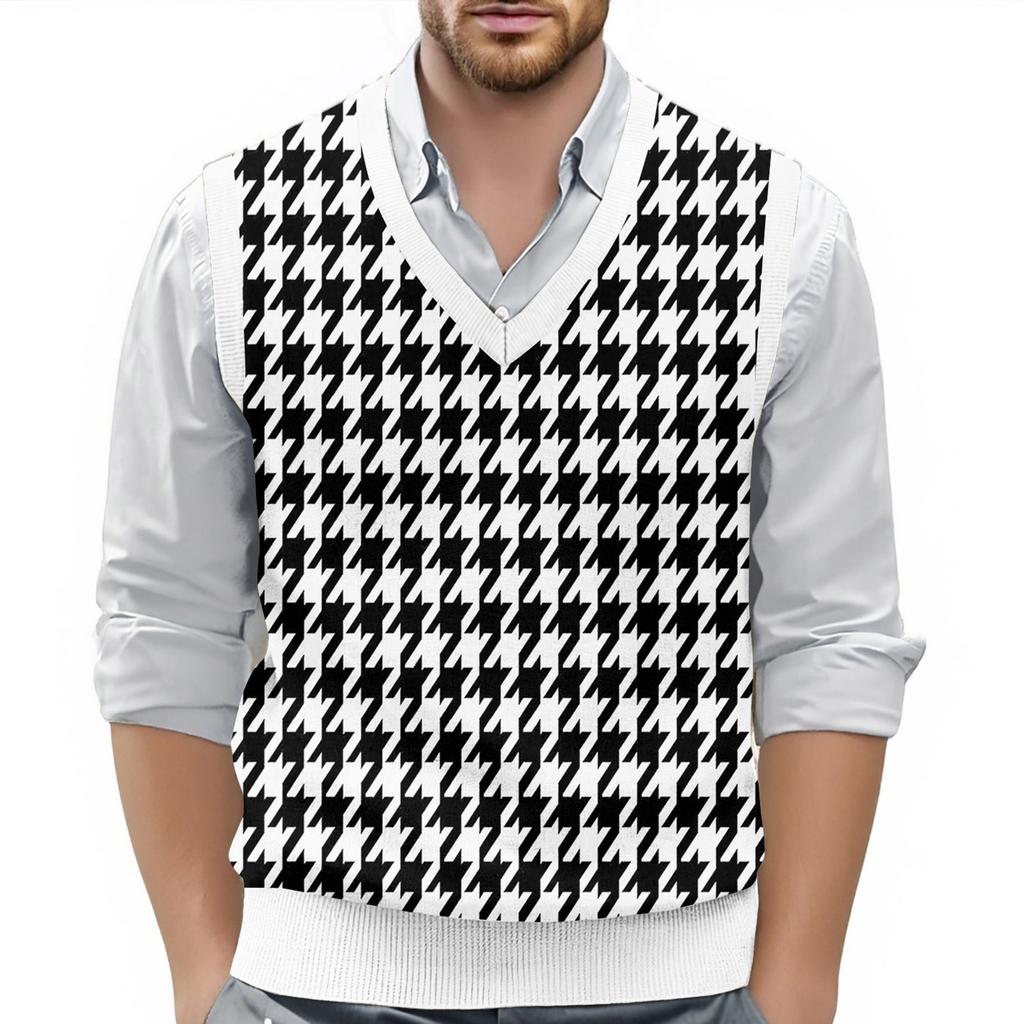 Мужской жилет без рукавов с клетчатым принтом и V-образным вырезом, вязаный джемпер
