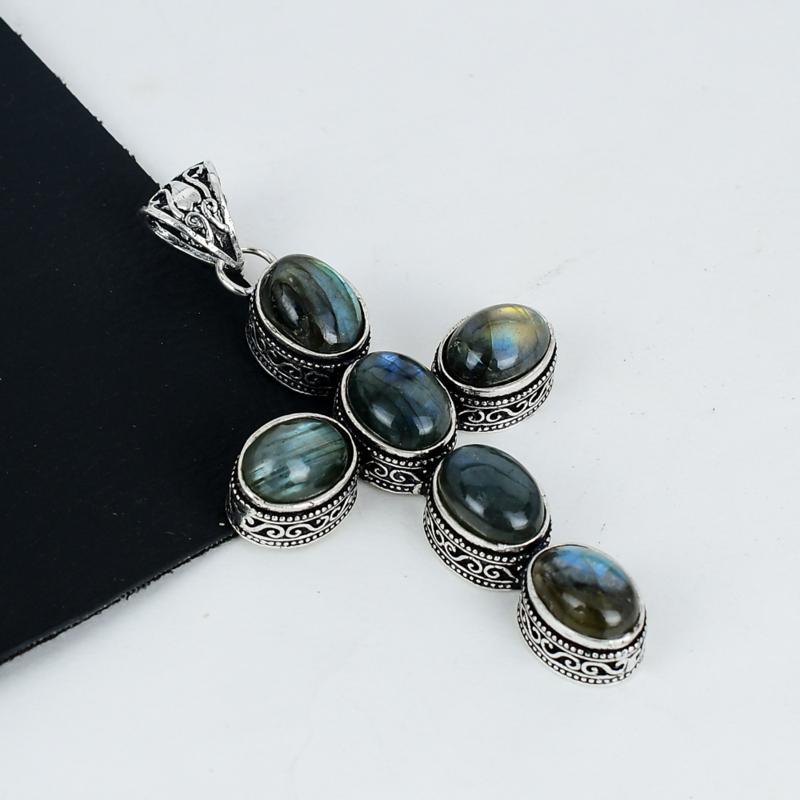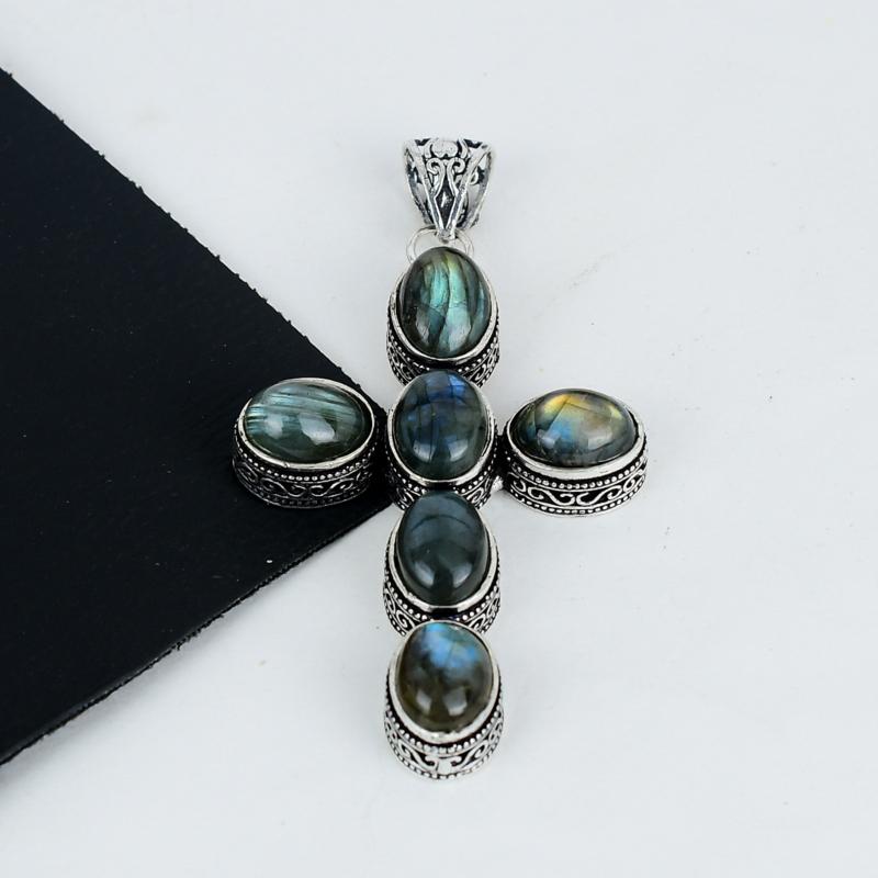 Изящный кулон с драгоценным камнем лабрадорит, серебро 925 пробы — дизайн креста ручной работы, повседневные украшения, уникальные подарки с кулоном из лабрадорита
