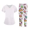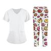 Плюс размерСкраб с принтом Рабочая форма Топы для женщин Крест V-образным вырезом Хэллоуин Принт с короткими рукавами Забавные футболки Спецодежда Футболка с карманами