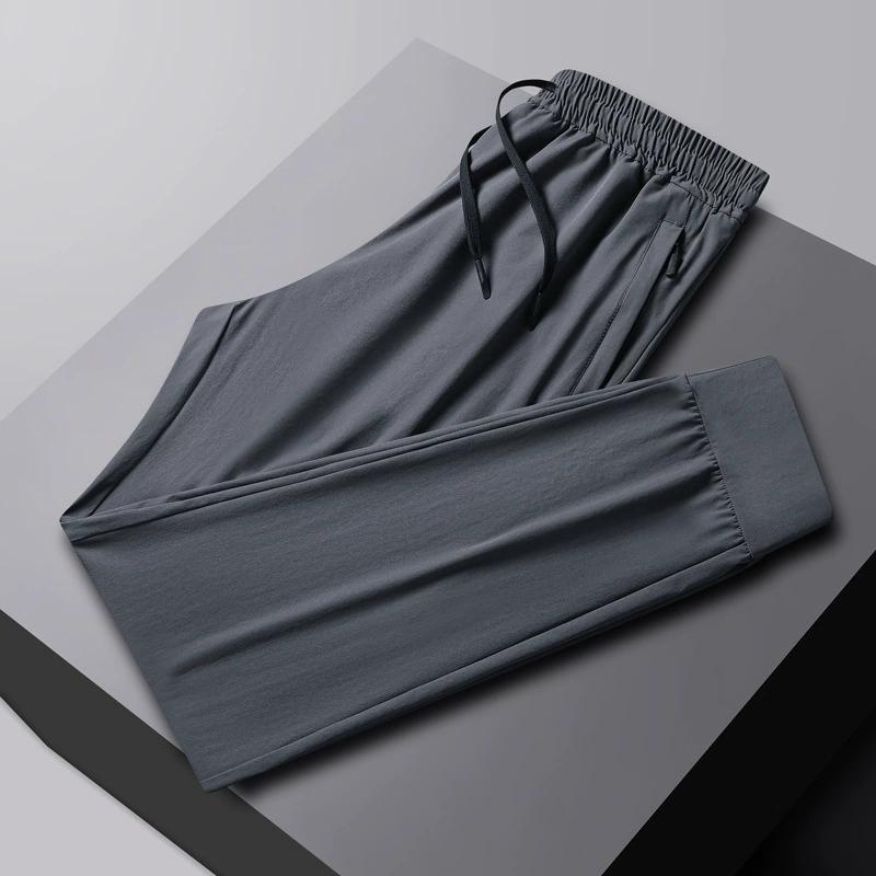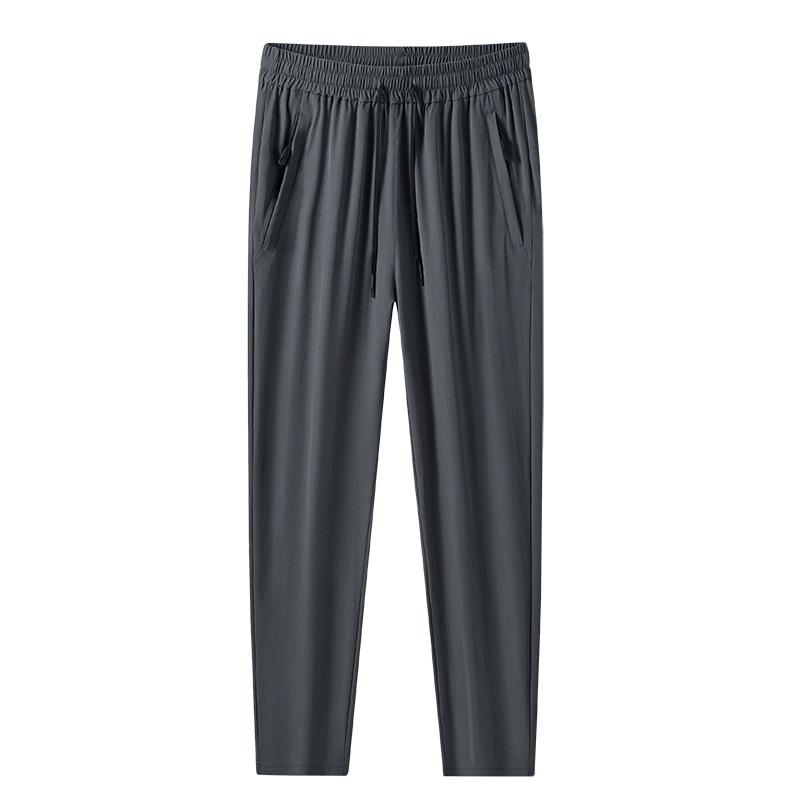Летние быстросохнущие повседневные брюки из ледяного шелка для мужчин, тонкие прямые брюки, дышащие, большого размера, свободный крой, спортивные брюки длиной до щиколотки для мужчин