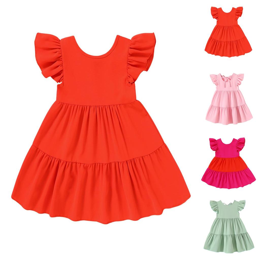 Юбка для девочек с короткими рукавами, однотонная юбка принцессы с развевающимися рукавами