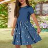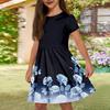 Летнее платье для девочек, однотонное платье без рукавов с принтом и карманом, повседневное платье, вечернее платье с короткими рукавами