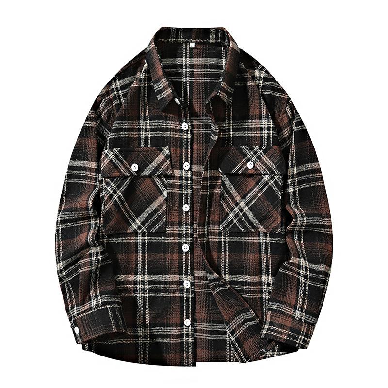 Повседневная мужская рубашка больших размеров, свободная и модная клетчатая рубашка с длинными рукавами, ретро-стиль