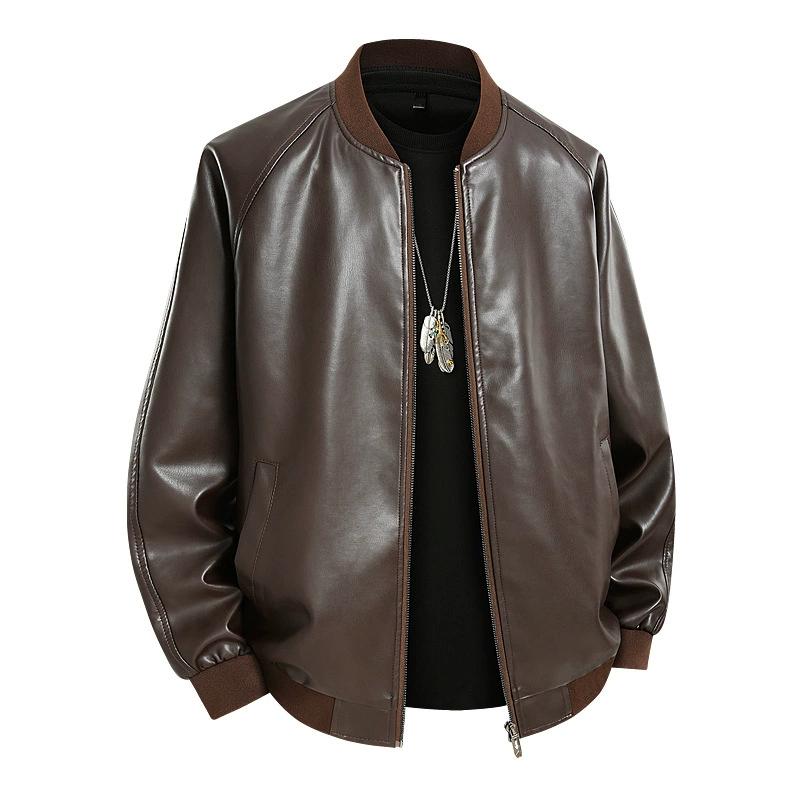 Куртка из искусственной кожи с воротником-стойкой, мужское пальто, кожаная куртка, мужской мотоциклетный костюм