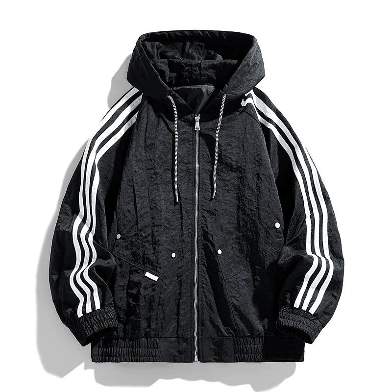 L-9XL Спортивная мужская повседневная куртка для активного отдыха Мужская свободная куртка с капюшоном и тремя полосами — купить товар онлайн с бесплатной доставкой по всему миру!