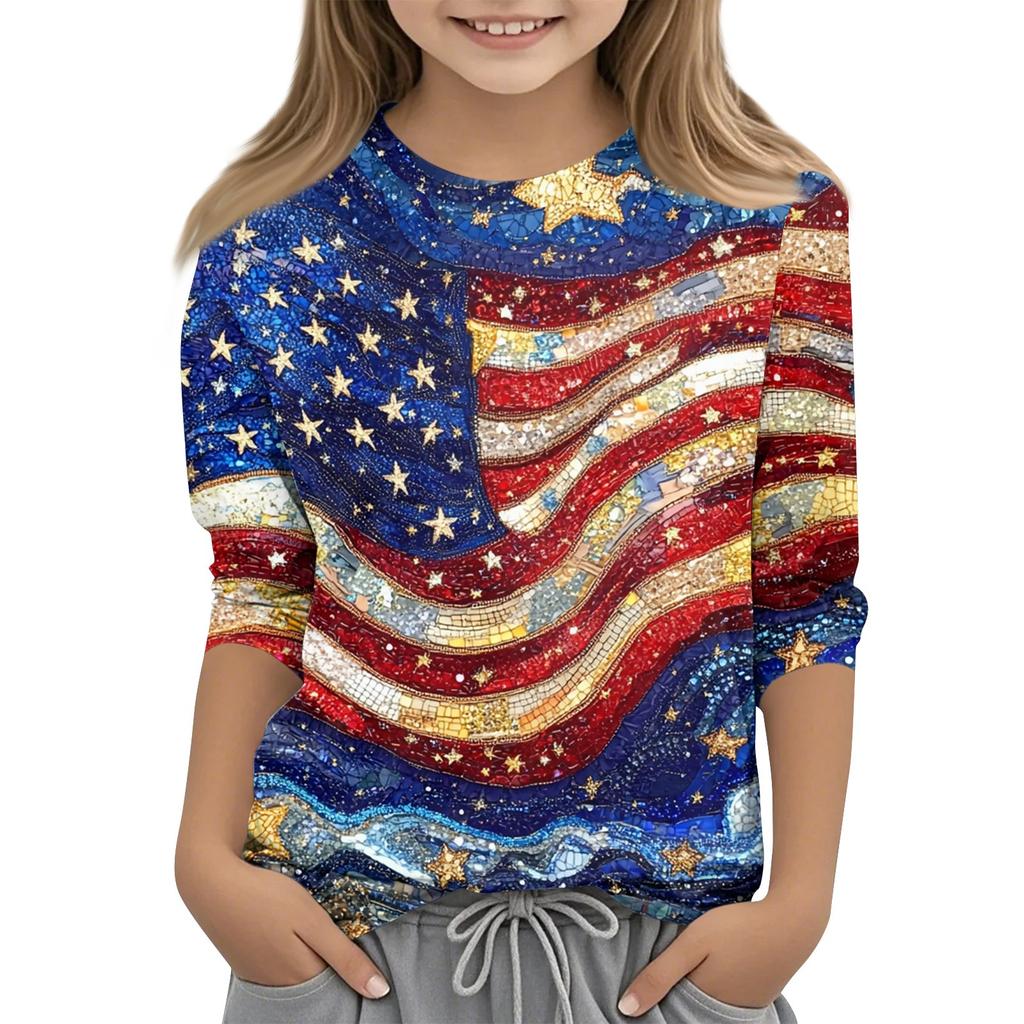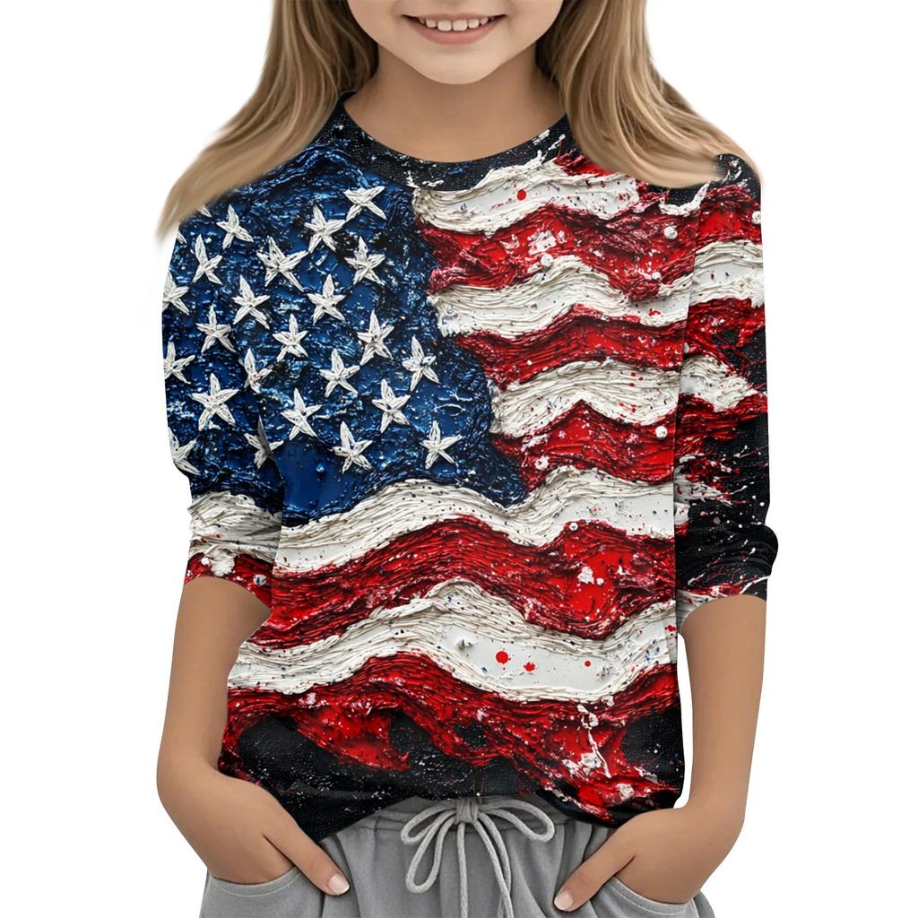 Детская модная повседневная футболка с круглым вырезом и рукавом три четверти