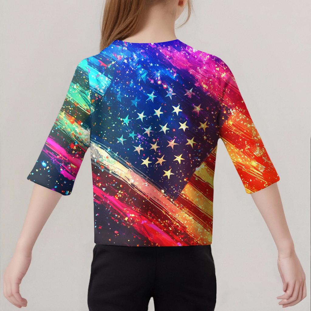 Детская модная повседневная футболка с круглым вырезом и рукавом три четверти