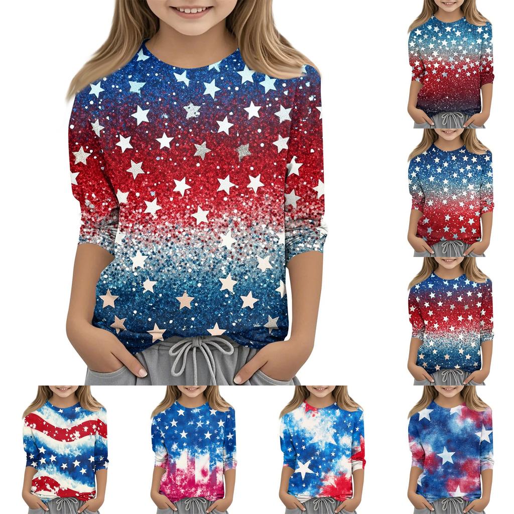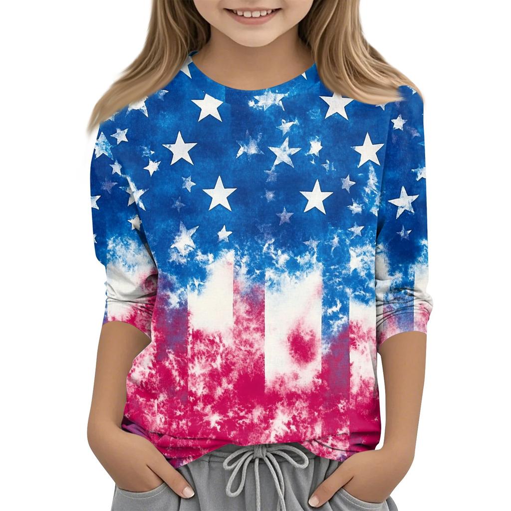 Детская модная повседневная футболка с круглым вырезом и рукавом три четверти