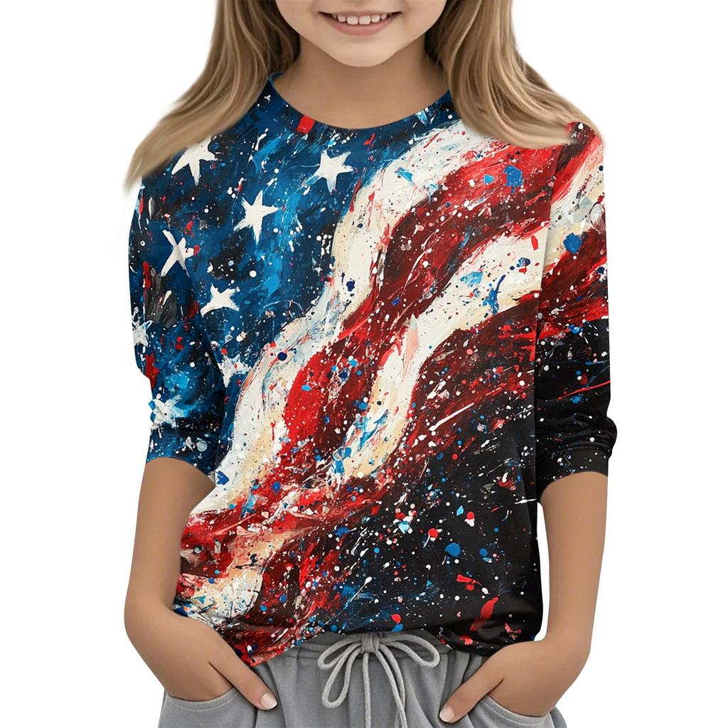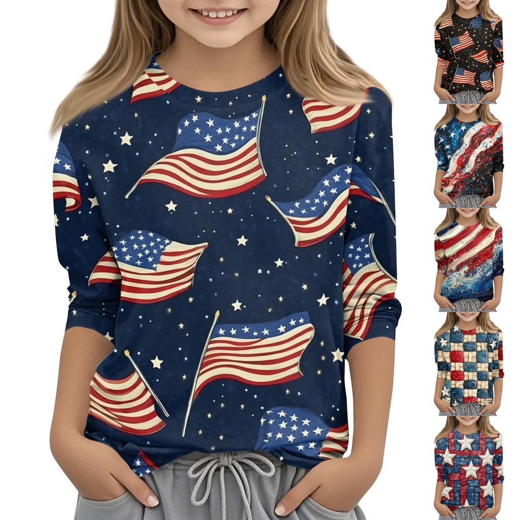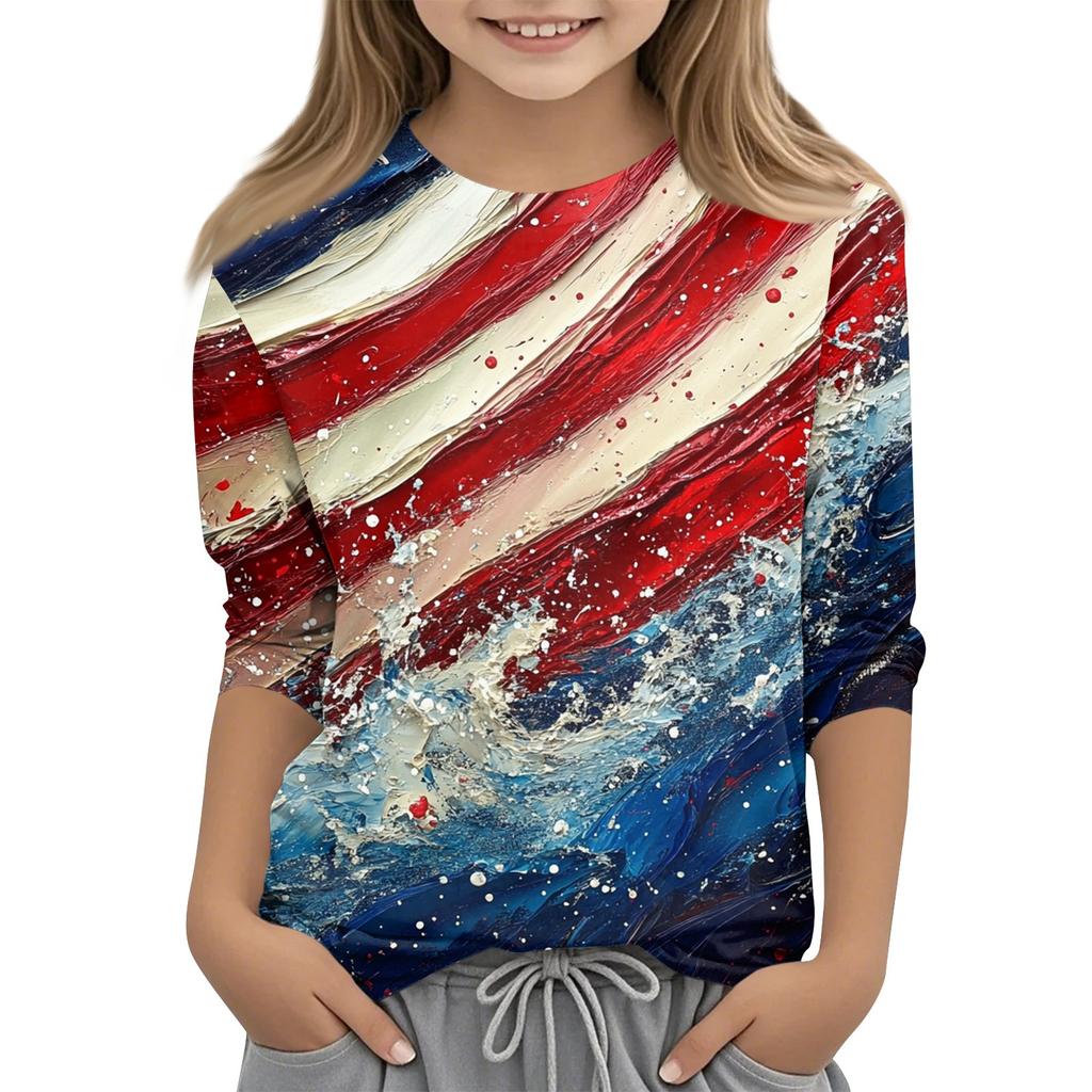 Детская модная повседневная футболка с круглым вырезом и рукавом три четверти