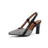 2019 новые модные элегантные женские босоножки в клетку корейской версии с острым носком и толстым каблуком