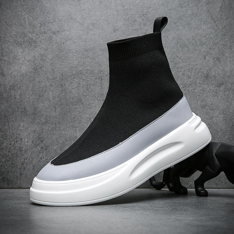 Новые высокие носки, обувь, мужская всесезонная обувь из летучего трикотажа, дышащая мягкая подошва, модный тренд, уличный стиль, гонконгская трендовая обувь