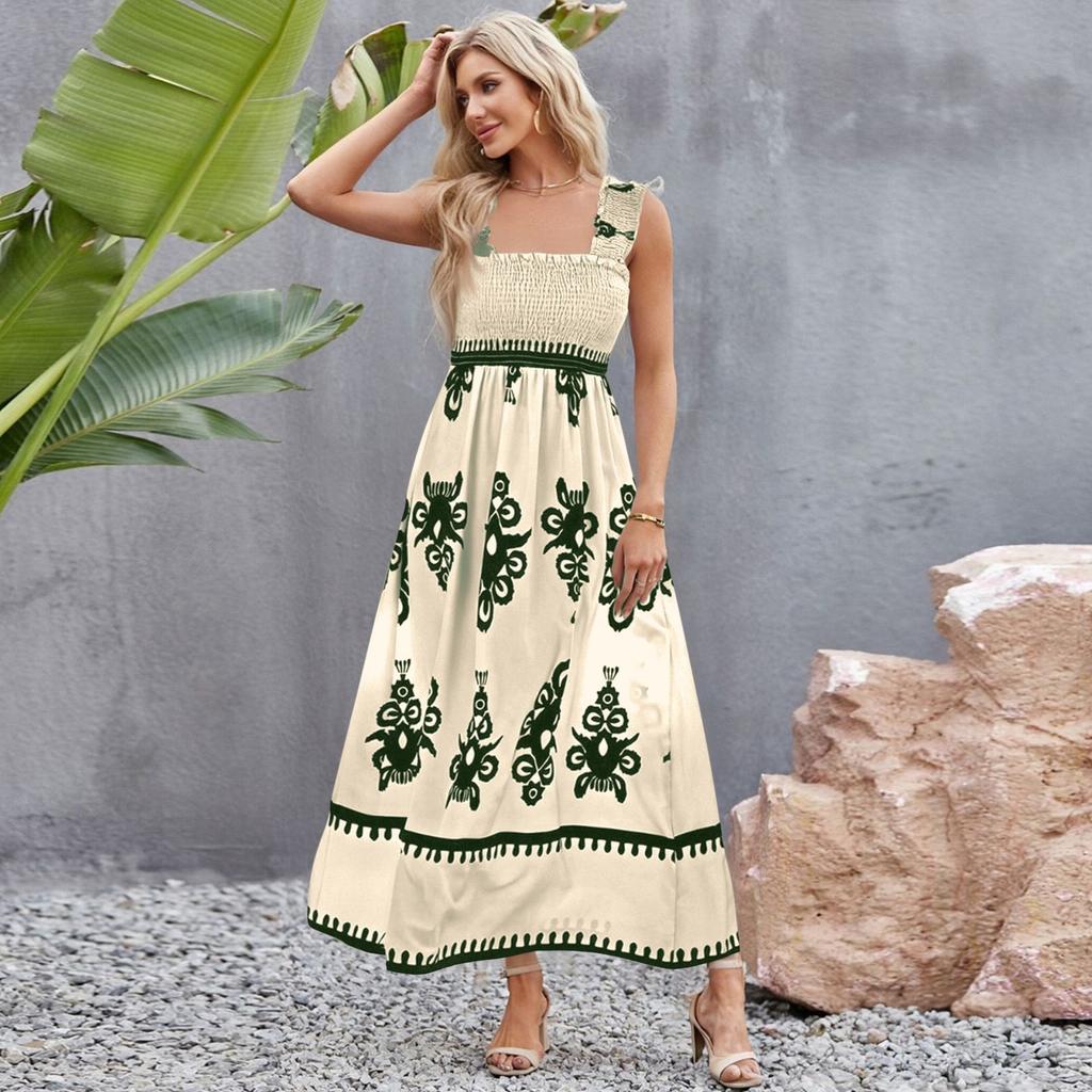 Женское модное ретро-платье с принтом в стиле бохо, пляжное платье для отдыха на пляже