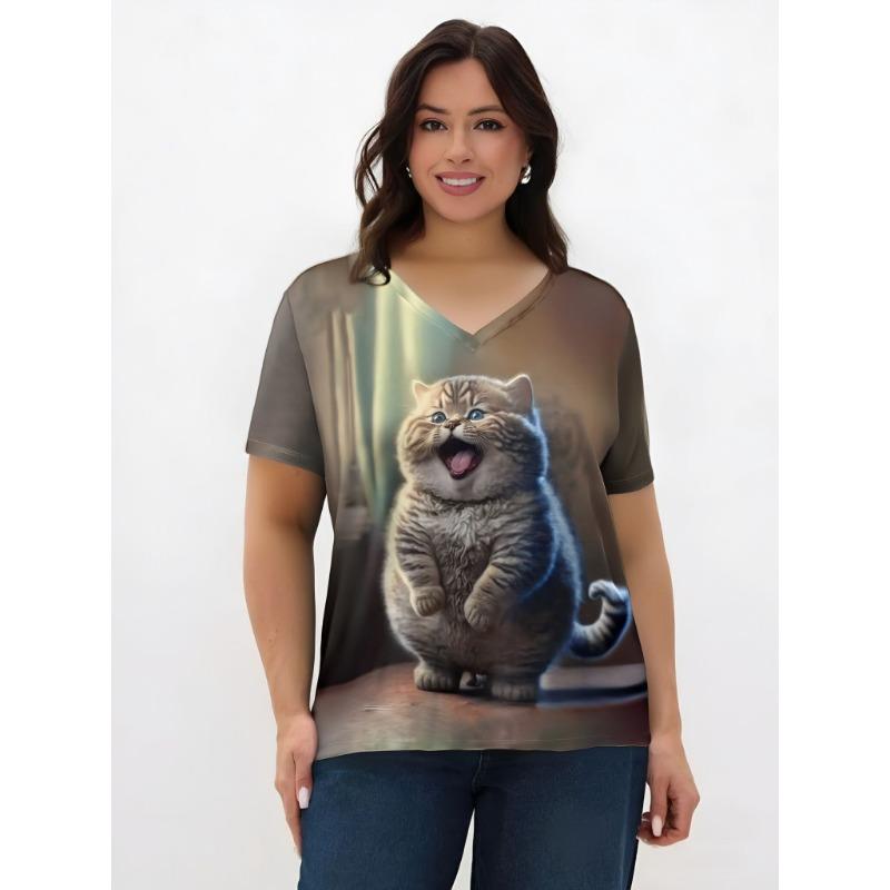 Летняя модная женская блузка с рисунком животных, футболки с круглым вырезом, повседневные женские топы с круглым вырезом, забавные свободные топы с короткими рукавами