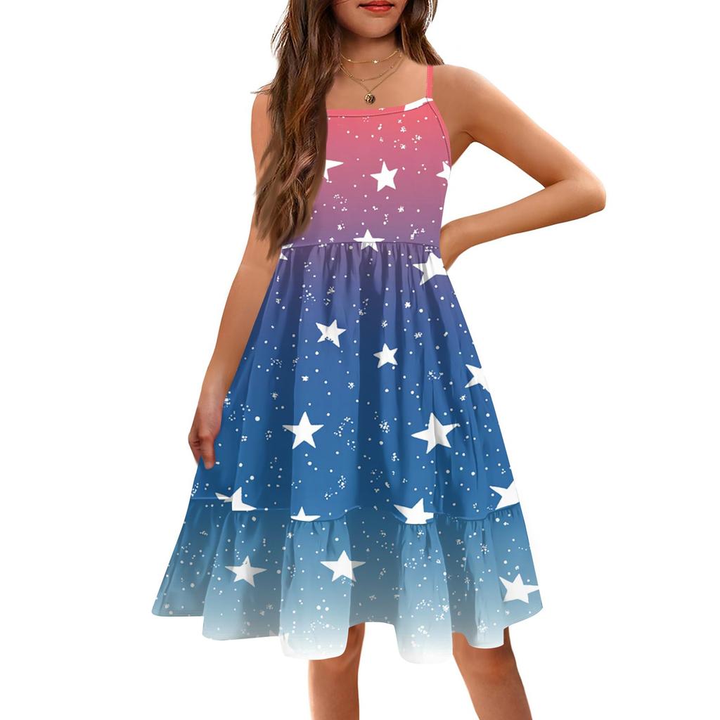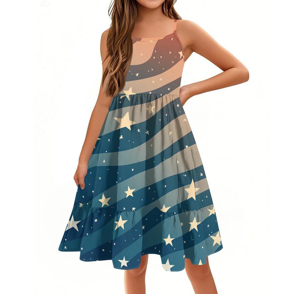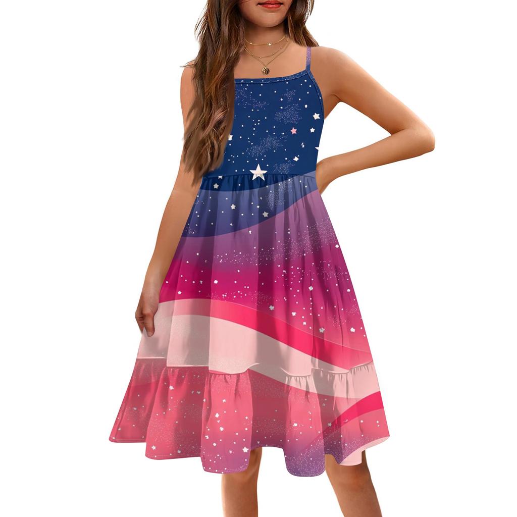 Летнее детское платье без рукавов для девочек, милое повседневное платье принцессы на День независимости