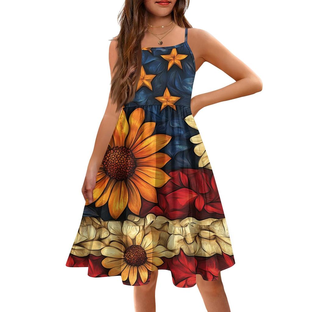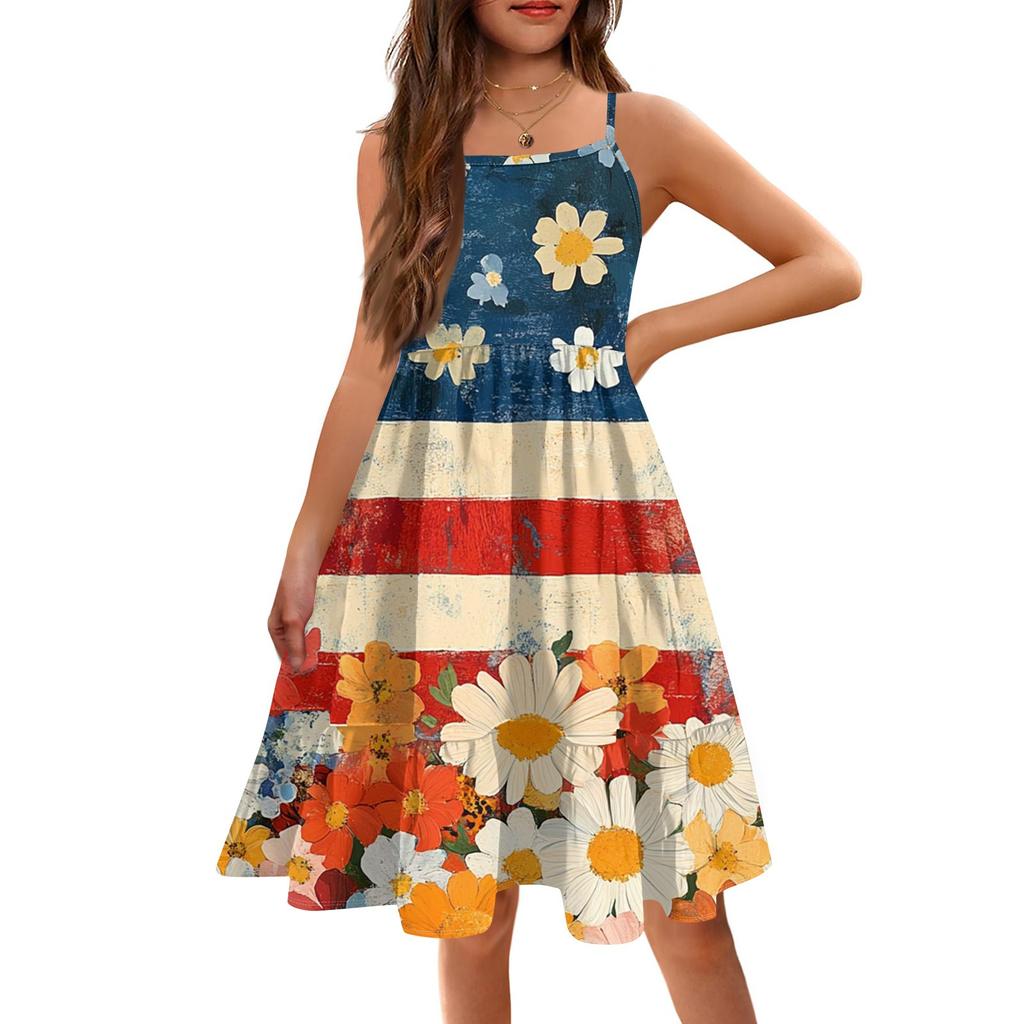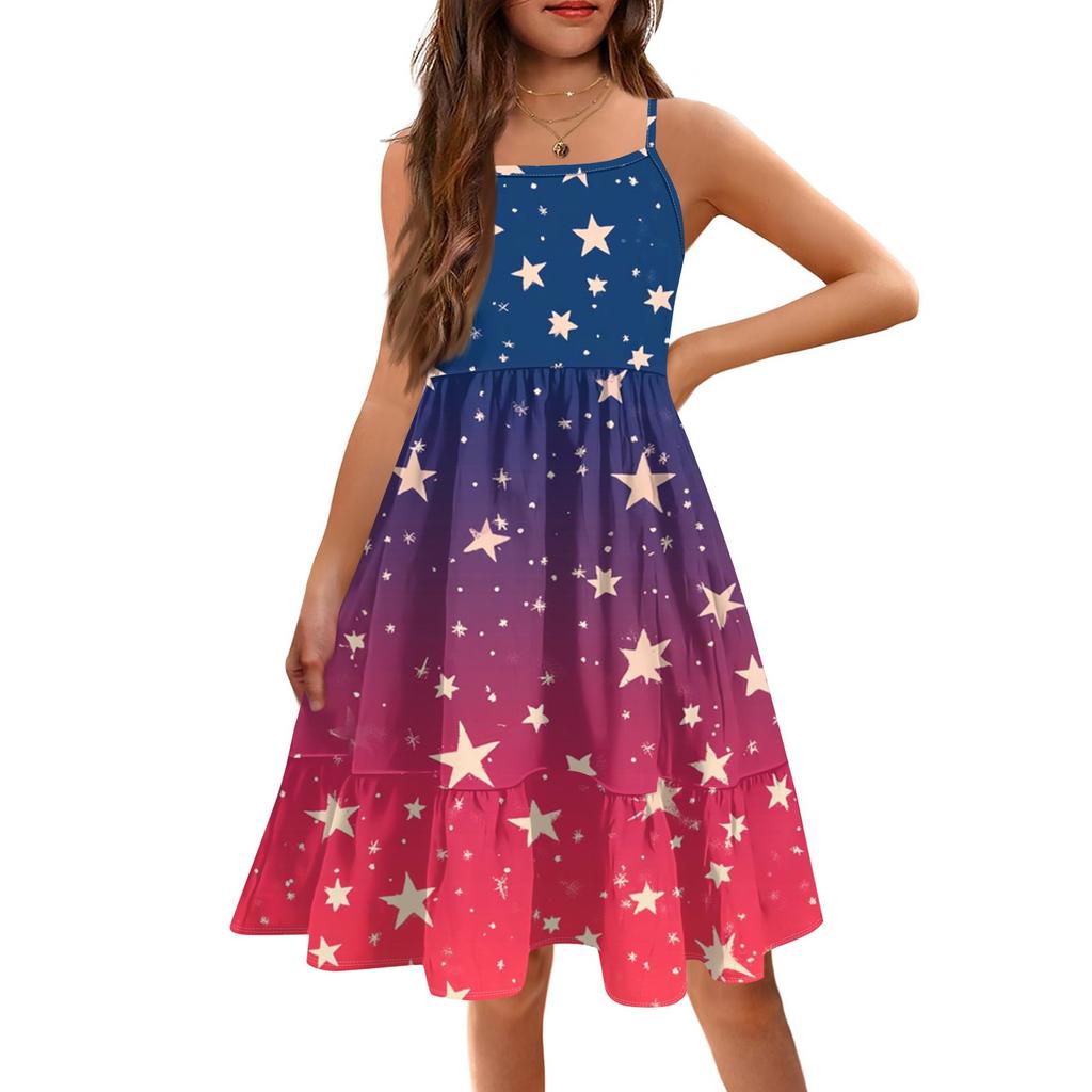 Летнее детское платье без рукавов для девочек, милое повседневное платье принцессы на День независимости