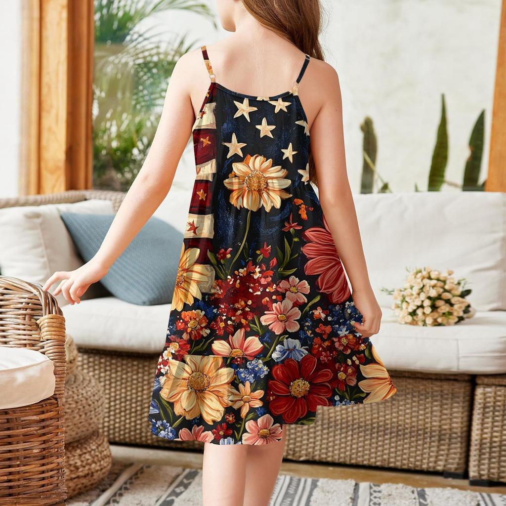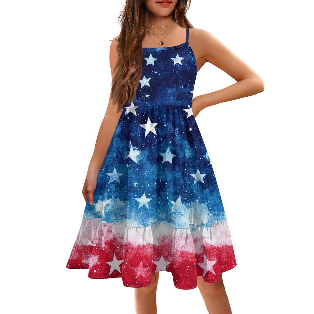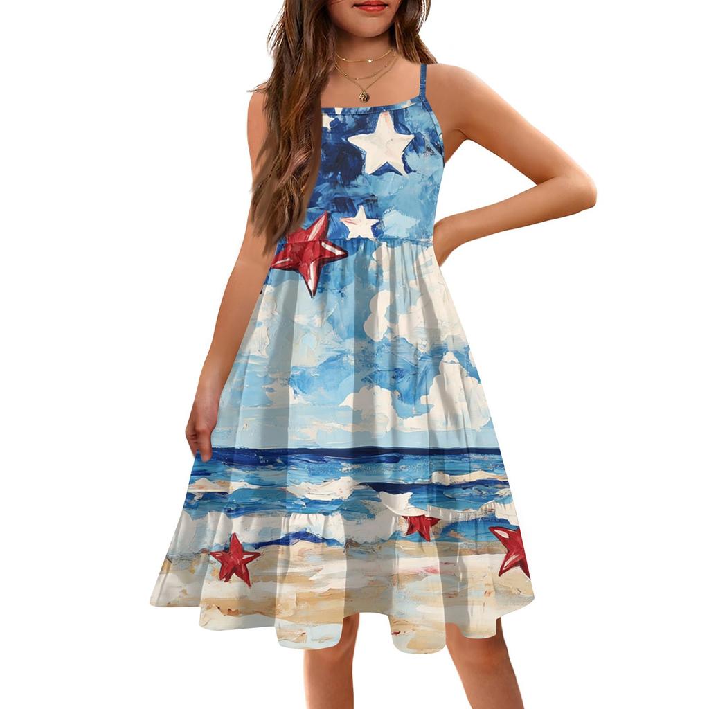 Летнее детское платье без рукавов для девочек, милое повседневное платье принцессы на День независимости