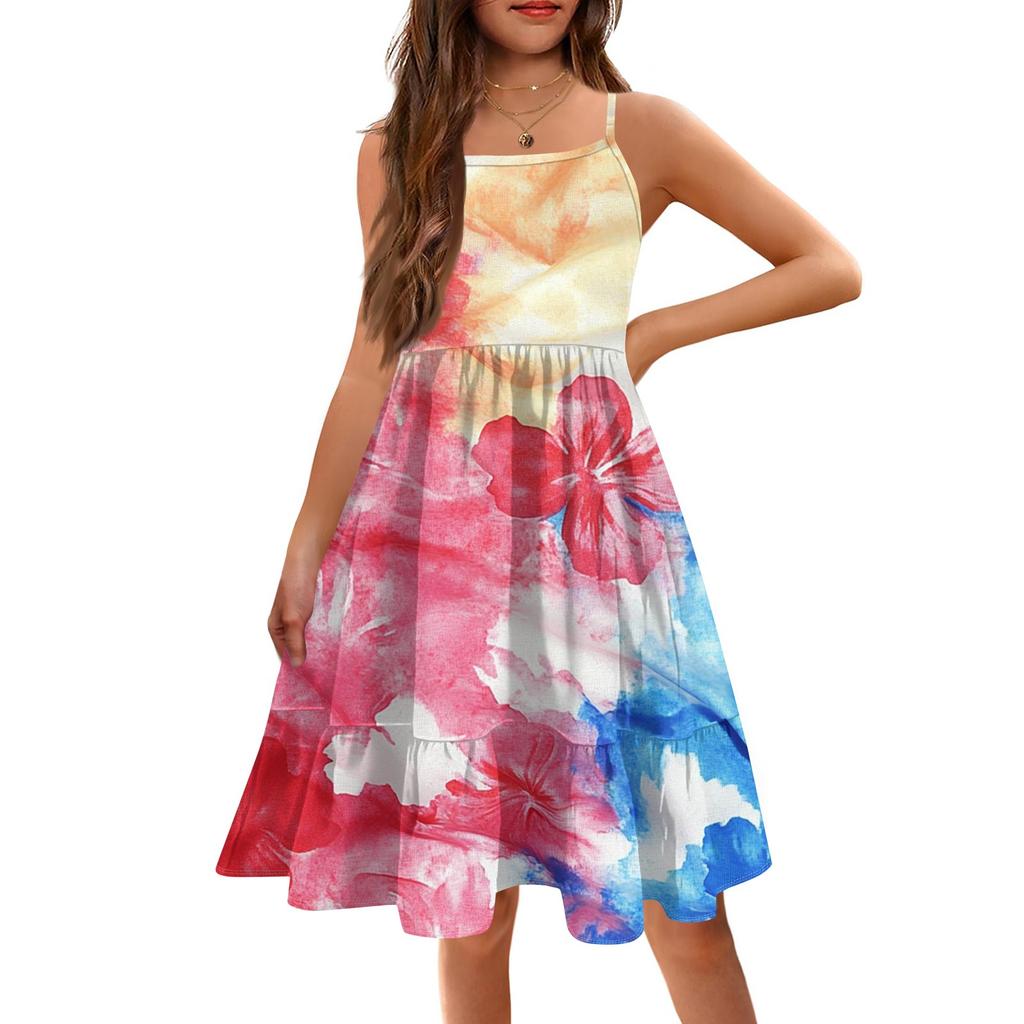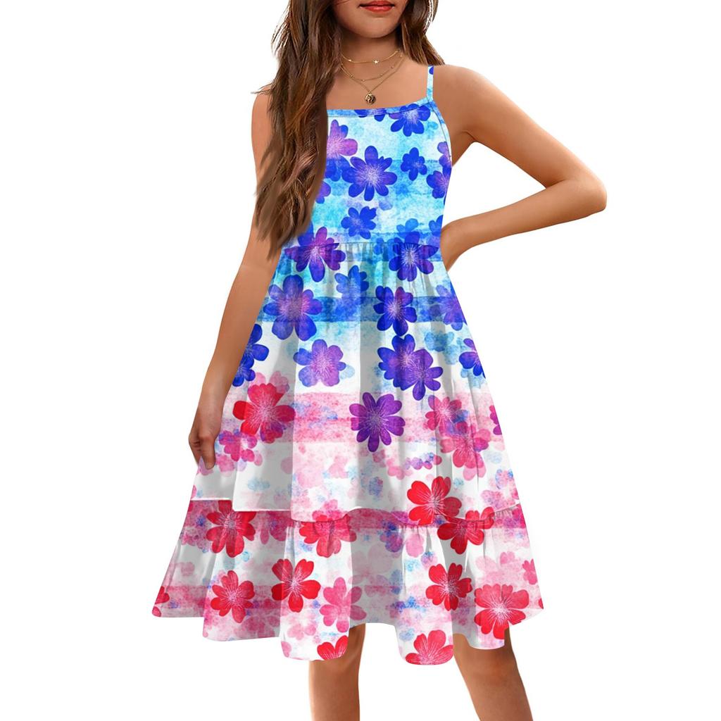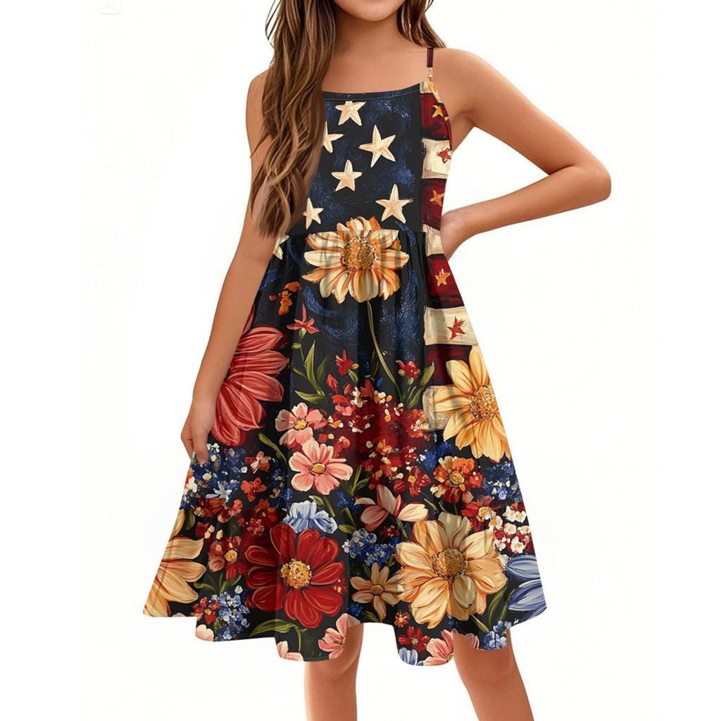 Летнее детское платье без рукавов для девочек, милое повседневное платье принцессы на День независимости