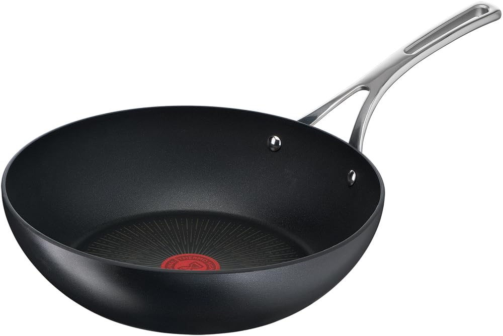 Tefal Кастрюля 28 см Глубокий вок Совместима с индукционными и газовыми плитами Без вредных веществ, таких как ПФОК Вок Черный E52319 Для жарки с перемешиванием Антипригарное покрытие Долговечная "Experience+