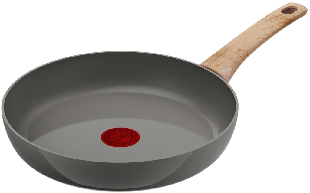 Сковорода Tefal с керамическим покрытием 26 см, совместимая с индукционными и газовыми плитами, не содержит вредных веществ, таких как ПФОК, гладкая в использовании и Ceramic Glide, цвет Земляной серый, жарочная сковорода серого цвета