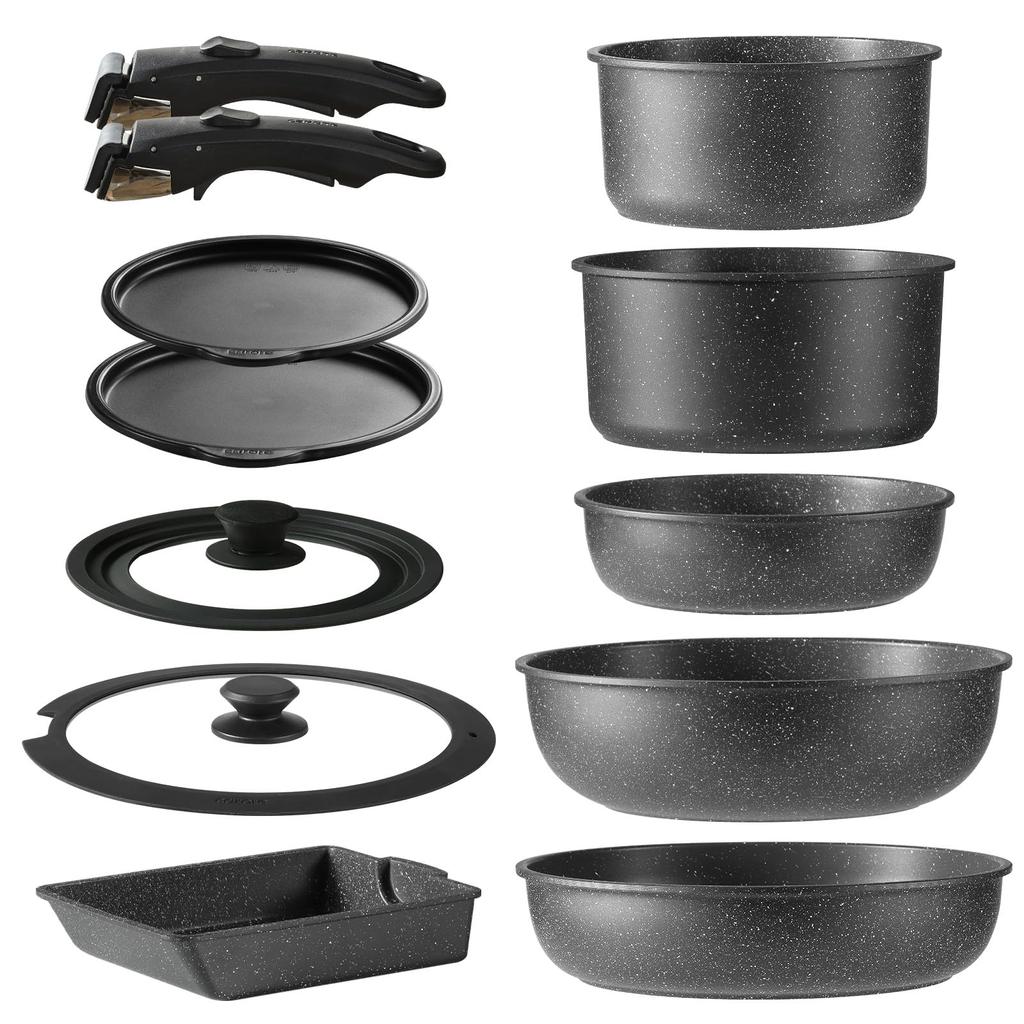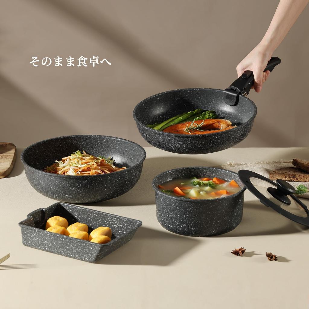 👍【Специальная съемная ручка】Специальная ручка, которую можно легко снять, что делает ее удобной для использования в различных ситуациях.. Поскольку ручка не мешает, ее можно хранить в местах с ограниченным пространством.. После приготовления блюдо можно подать на стол с подставкой.