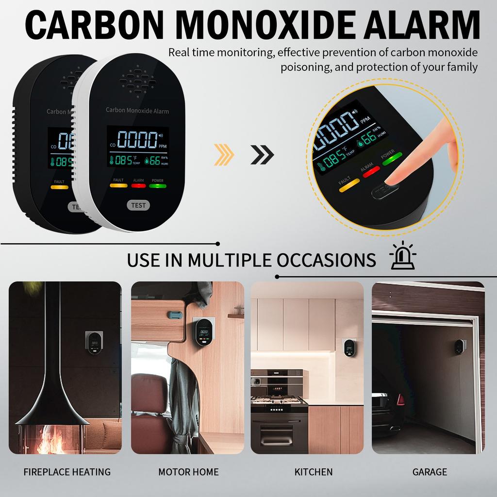 Детектор: Детектор утечки природного газа и детектор угарного газа оснащены детекторами природного газа, угарного газа, температуры и влажности, мощными функциями, датчиками, системами сигнализации, быстрым реагированием и всесторонним обеспечением личной безопасности вас и вашей семьи.. Поддерживает оксид углерода, метан, сжиженный нефтяной газ. (LPG), сжиженный природный газ (СПГ), мазут, природный газ, пропан, топливо, этан, бутан, газ и другие горючие газы. Система сигнализации быстрого реагирования: Детектор угарного газа в автофургоне оснащен визуальной системой сигнализации.. Когда концентрация газа (CO 150PPM, природный газ 5%НПВ), красный свет будет продолжать мигать и сопровождаться громким звуковым сигналом. (Звук будильника 85 Дб). Позвольте вам и вашей семье осознать опасные ситуации с первого взгляда и обеспечить безопасность вашей жизни.. Экологически чистая и энергосберегающая конструкция: Детектор угарного газа имеет разъемную конструкцию, подходящую для переменного тока 110 В 220 В.. Статическое потребление энергии 2 Вт, более энергосберегающее. Электронный датчик имеет длительный срок службы, более экологичен и не требует частой замены.. ЖК-дисплей, широкое применение: Детекторы угарного газа и пропана в автофургонах оснащены цветными ЖК-дисплеями с четким цифровым дисплеем.. Может обнаружить угарный газ (0-2000ppm) и природный газ (0-10%НПВ). Небольшой размер, не занимает места, подходит для дома, отеля, автофургона и корабля.. Меры предосторожности перед использованием: Перед использованием снимите защитную пленку и подождите 180 секунд, чтобы детектор адаптировался к окружающей среде после установки.. Нажмите кнопку самотестирования, и детектор подаст звуковой сигнал.. Кроме того, поскольку после включения питания будет выделяться тепло, подождите 30 минут, за это время значения влажности и температуры будут более точными.. Технические характеристики: Материал:пластик Цвет:Белый Размер:L пакет включает в себя: