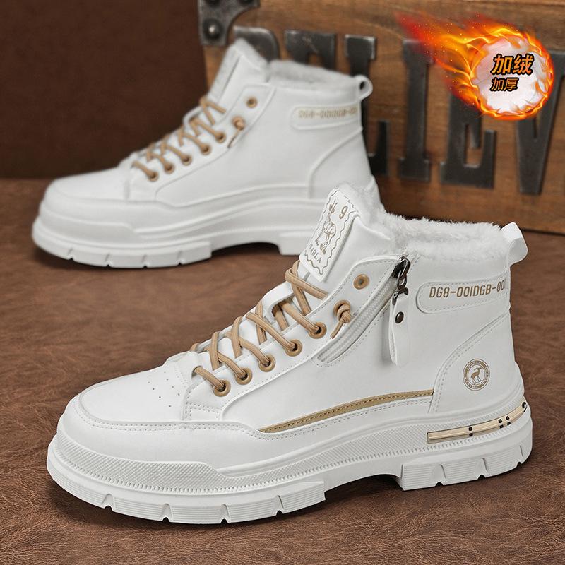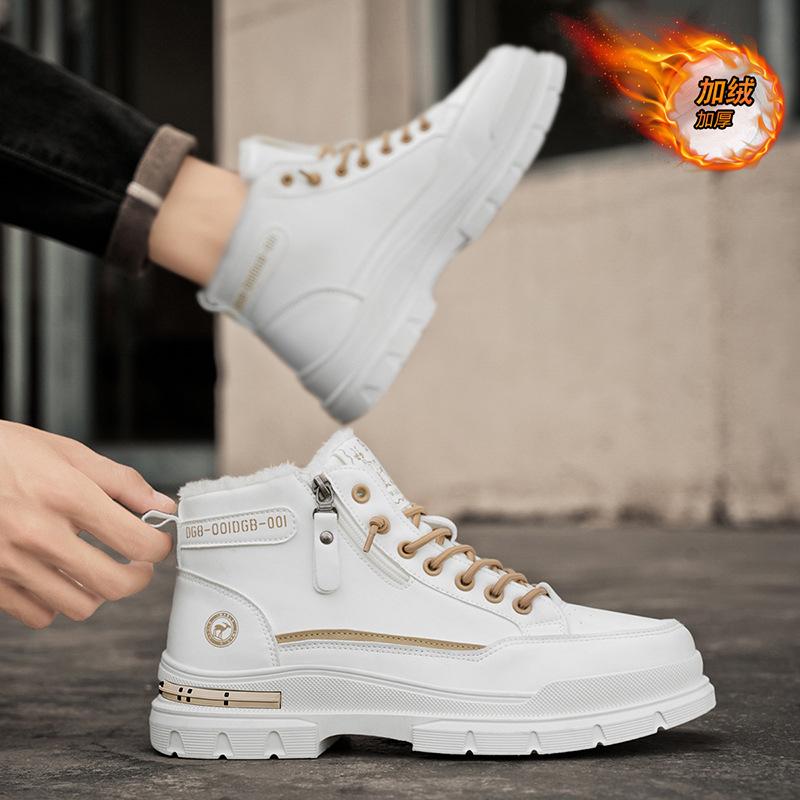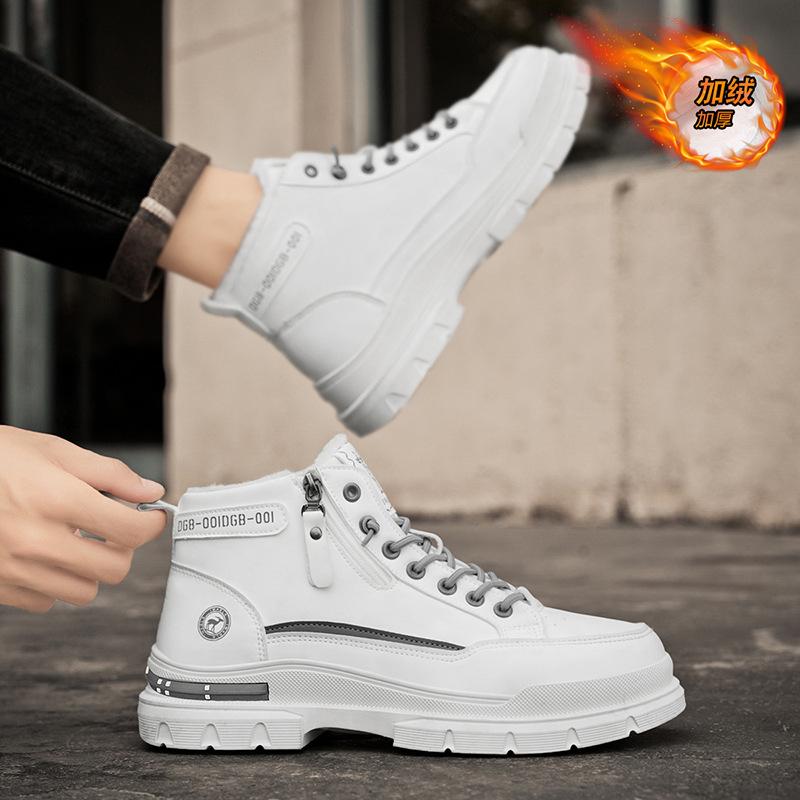 Зима 2024 новая мужская обувь на высокой подошве с флисовой подкладкой утолщенная модная трендовая обувь ботинки Мартин повседневная универсальная рабочая обувь трендовая обувь