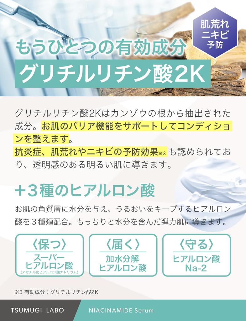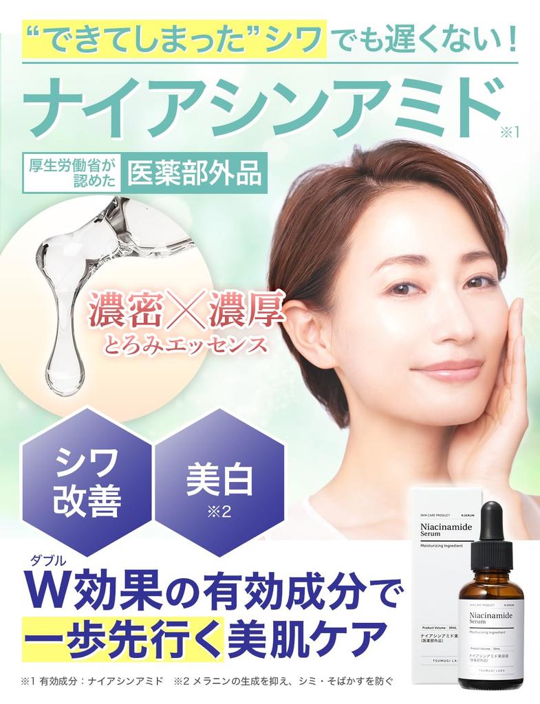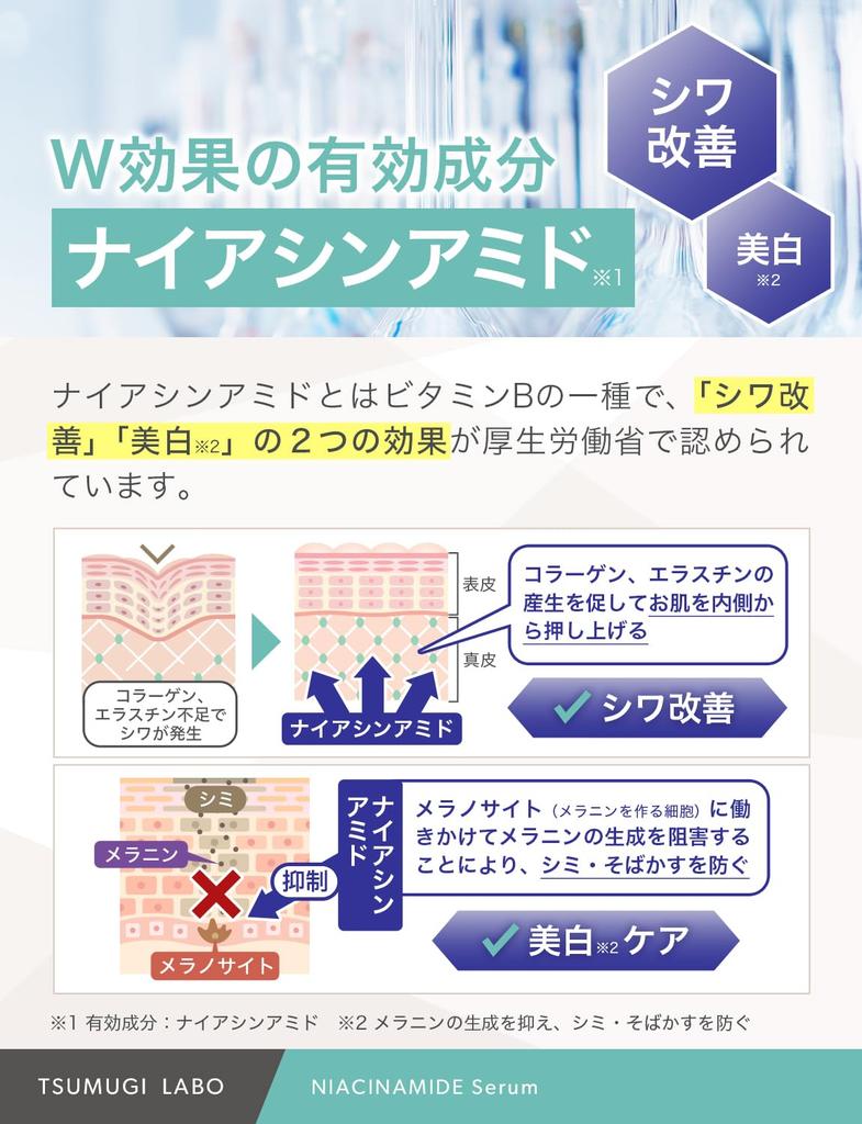 [Уменьшение морщин x отбеливание*] Активные ингредиенты ниацинамид и глицирризиновая кислота 2K уменьшают морщины и отбеливают* лечение. (*Подавляет выработку меланина и предотвращает появление веснушек)