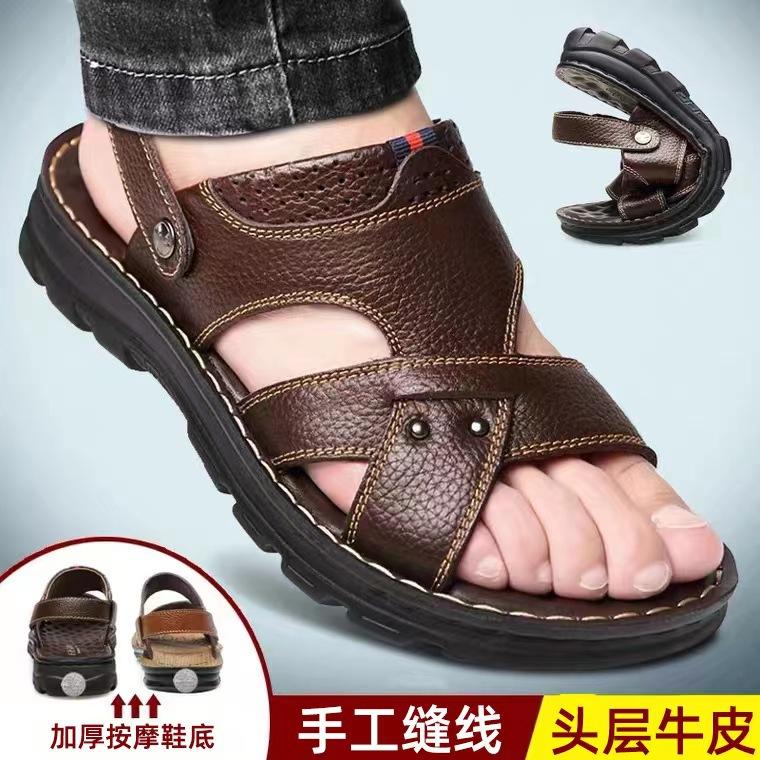 Мужские летние сандалии, новые шлепанцы, мягкая резиновая подошва, модная обувь, первый слой коровьей кожи, модная кожаная повседневная пляжная обувь — купить товар онлайн с бесплатной доставкой по всему миру!