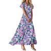 Женское платье макси в стиле бохо, женское летнее платье с коротким рукавом, весеннее повседневное платье А-силуэта с V-образным вырезом, летний пляжный сарафан для отдыха