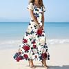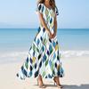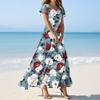 Женские повседневные модные длинные платья с принтом, платья с V-образным вырезом и коротким рукавом