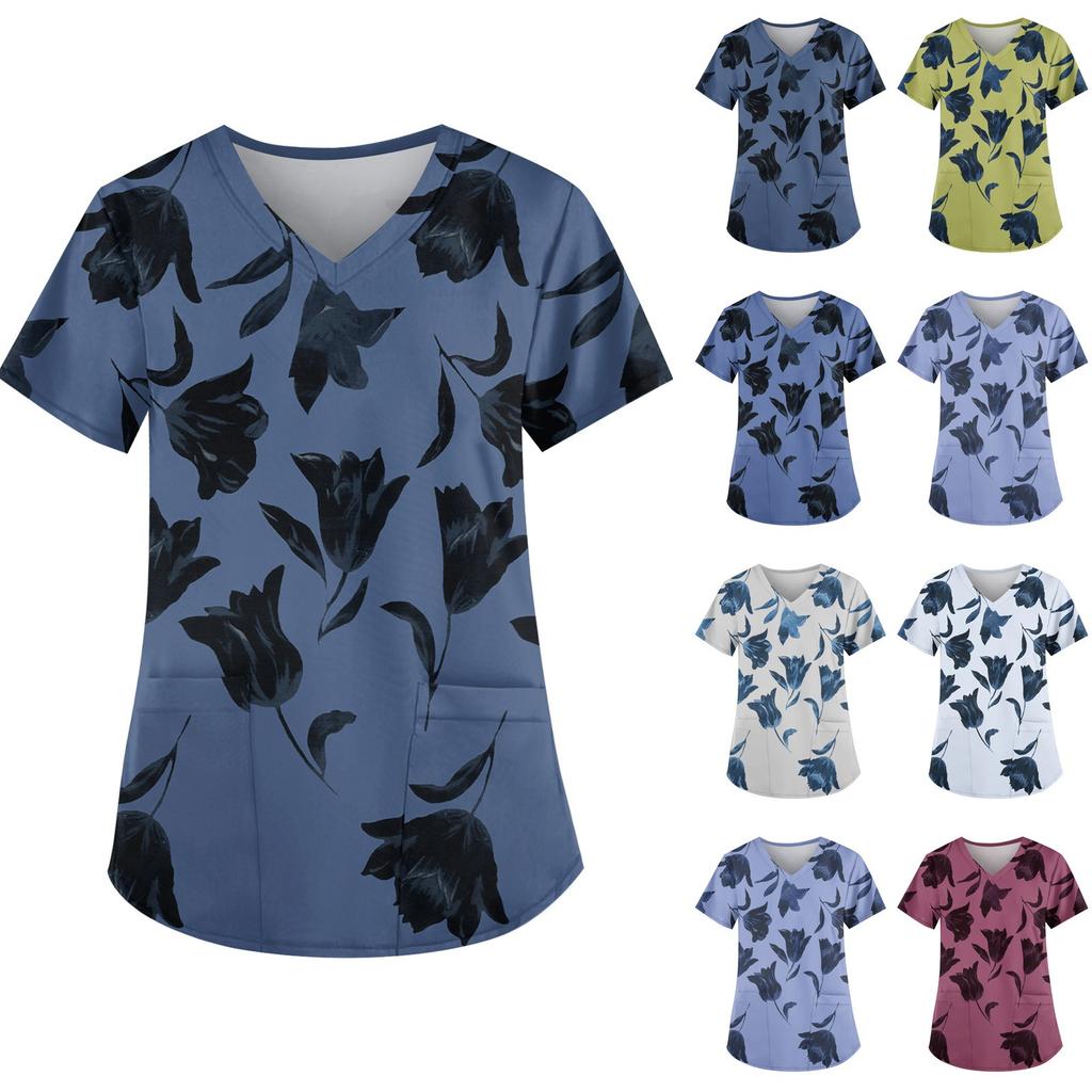 Рабочая форма больших размеров с принтом, топы для женщин, забавные футболки с v-образным вырезом и короткими рукавами, рабочая одежда, футболка с карманами — купить товар онлайн с бесплатной доставкой до всему миру!