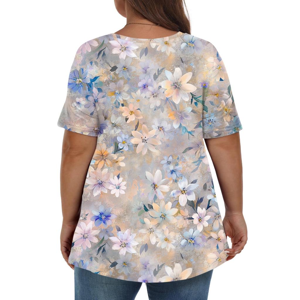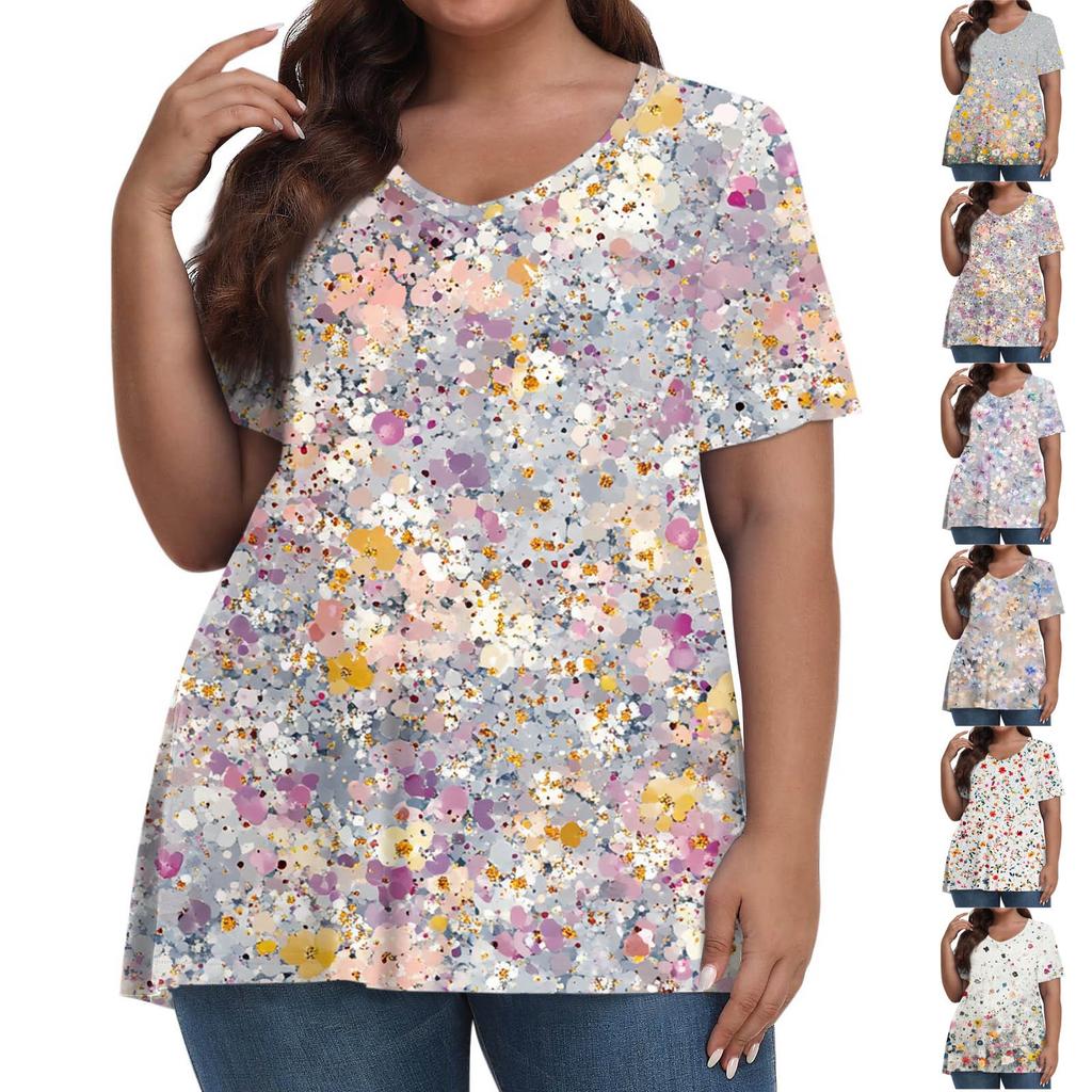 Женская мода повседневная футболка с коротким рукавом и V-образным вырезом большого размера с принтом