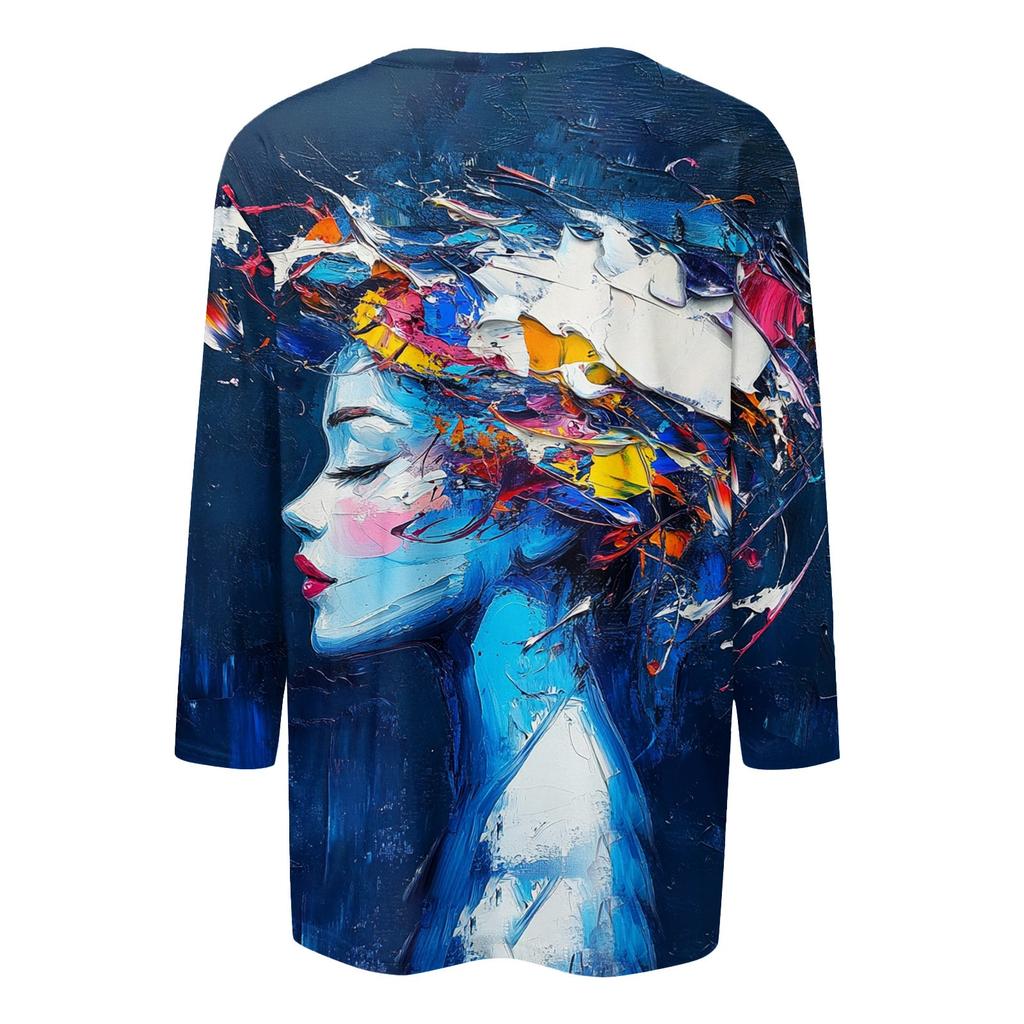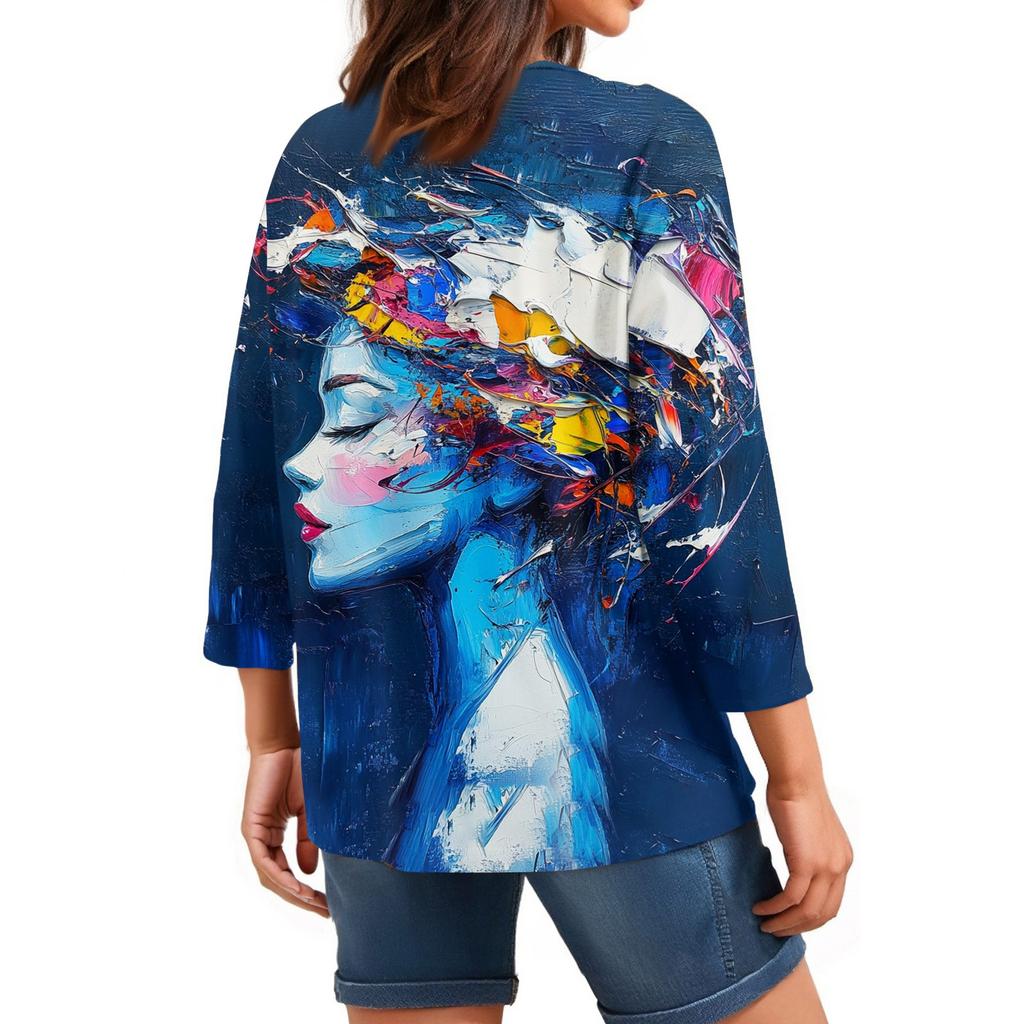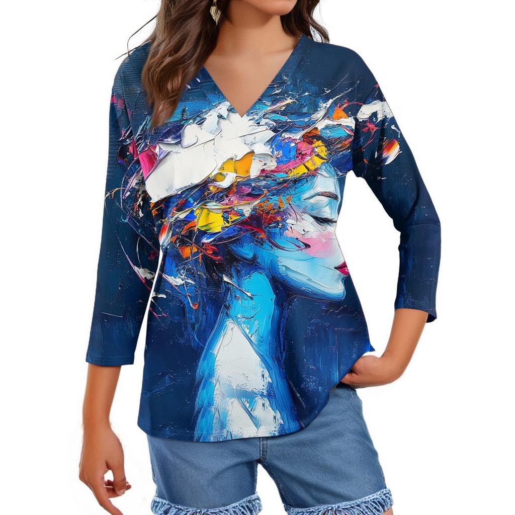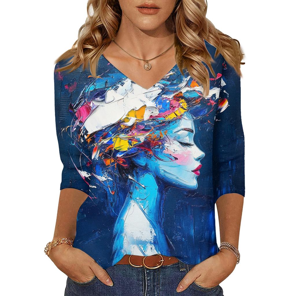 Женские топы, рубашка с рукавом три четверти, свободная повседневная рубашка с V-образным вырезом, футболка с принтом персонажей
