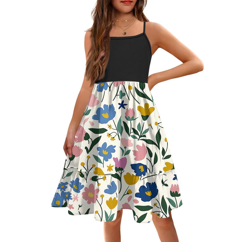 Летние детские платья Condole Girls с милым цветочным принтом без рукавов для отдыха принцесс