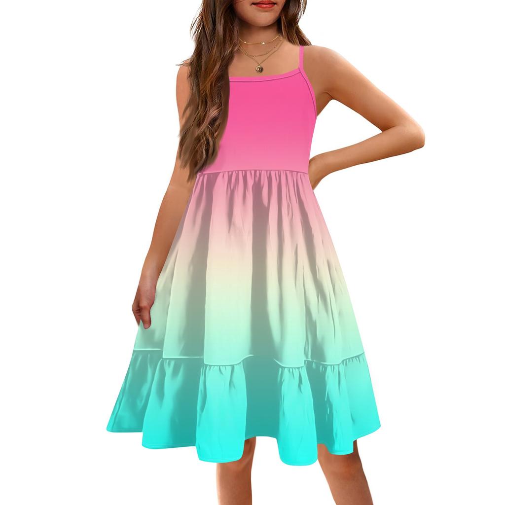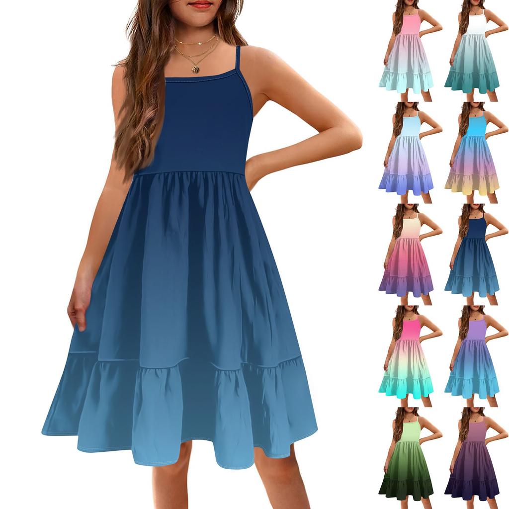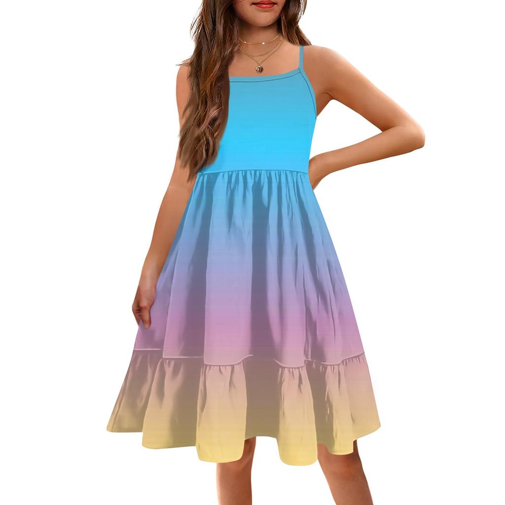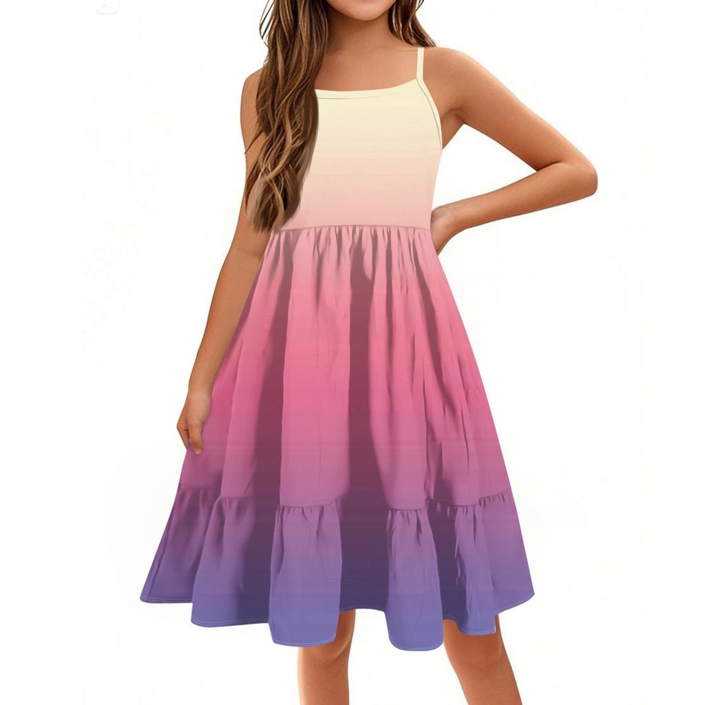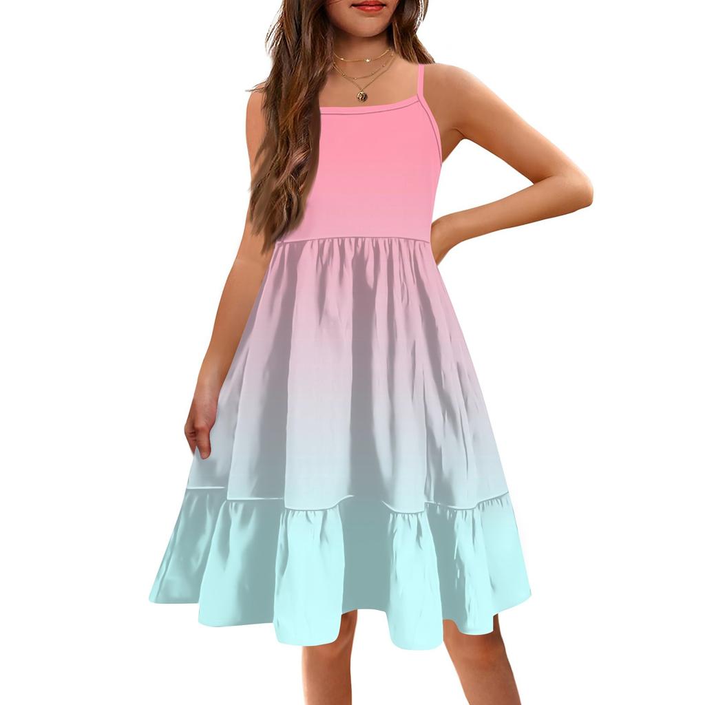 Дети Condole Girls Летние безрукавки Милые принцессы Печать Градиент Досуг Платья