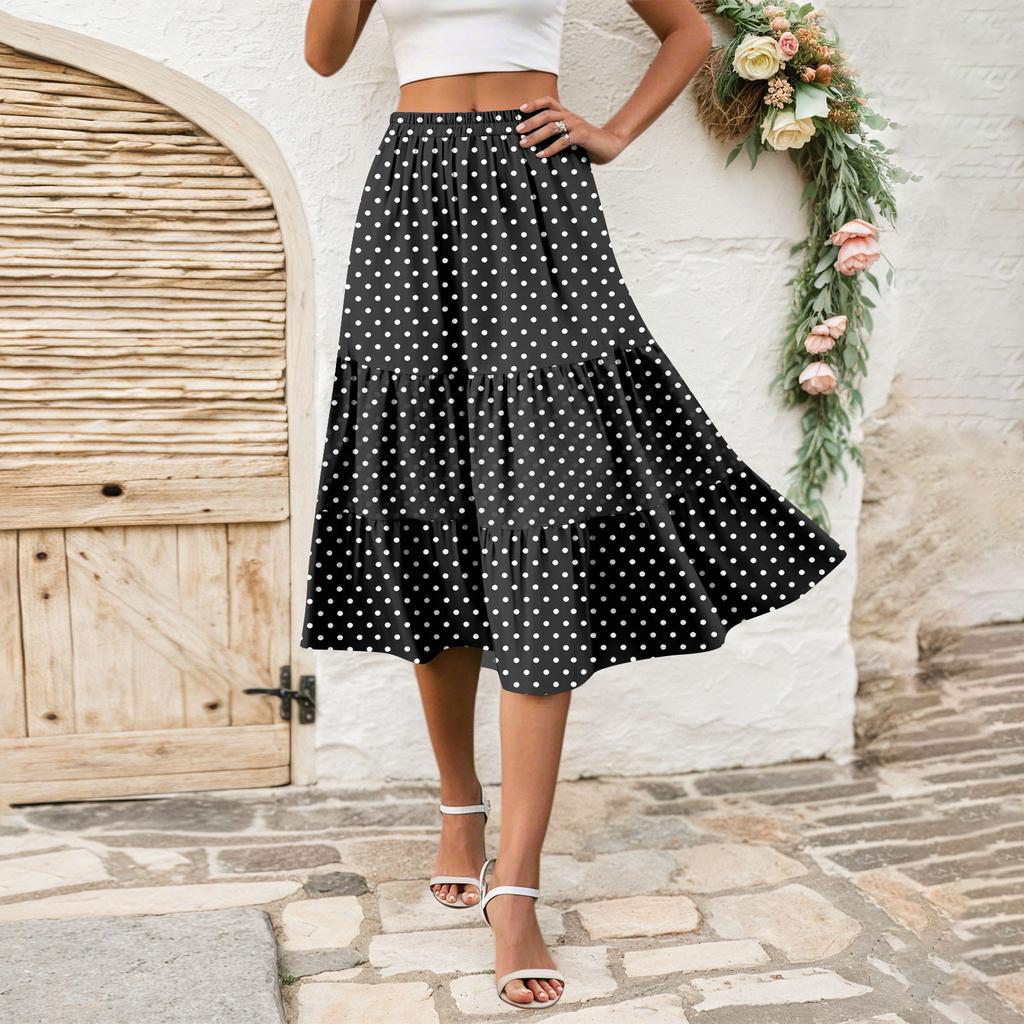 Женская повседневная юбка А-силуэта с высокой талией, юбка в полоску с принтом в горошек и карманами