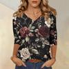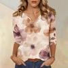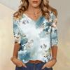 Женские топы, рубашка с рукавом три четверти, свободная повседневная рубашка с V-образным вырезом, футболка с цветочным принтом