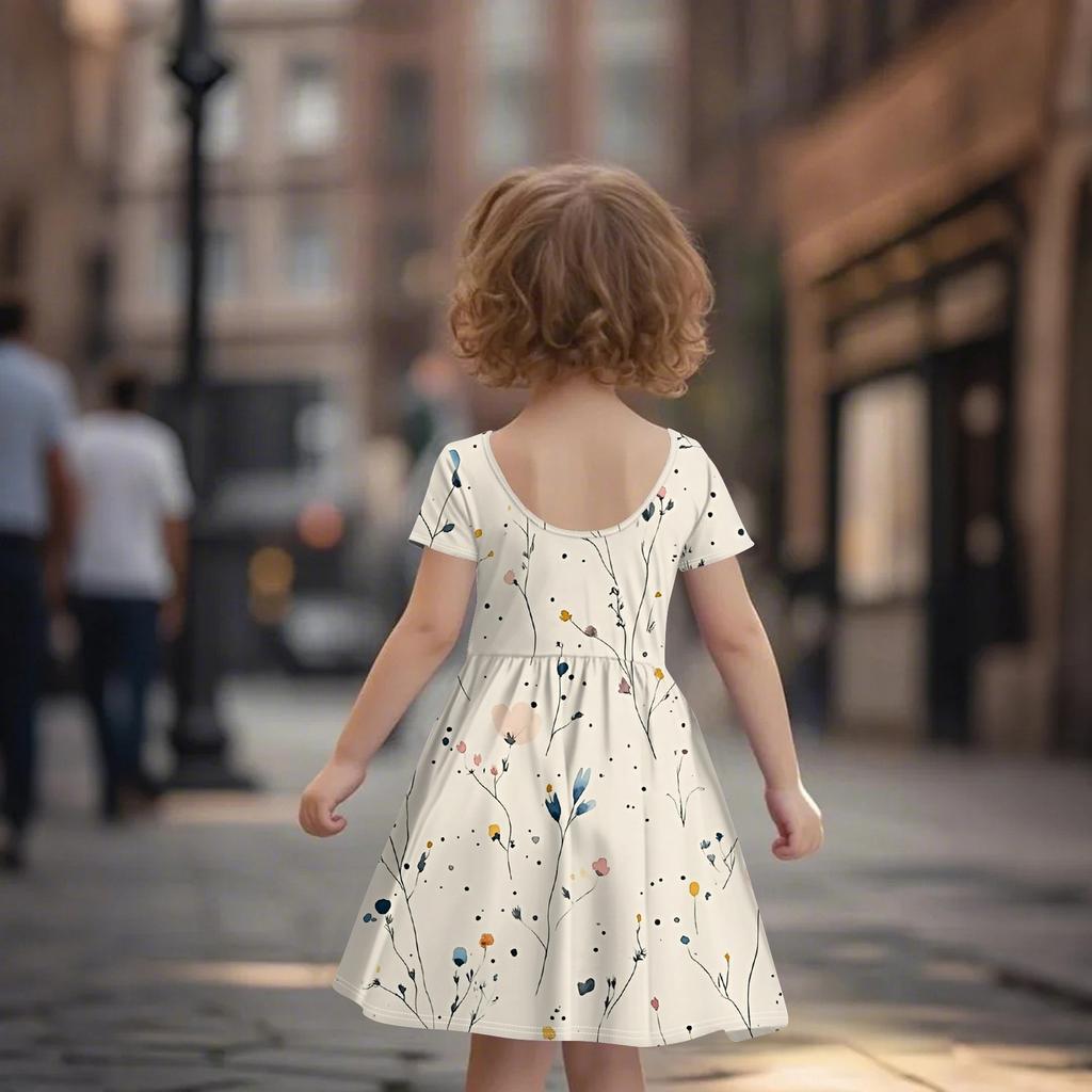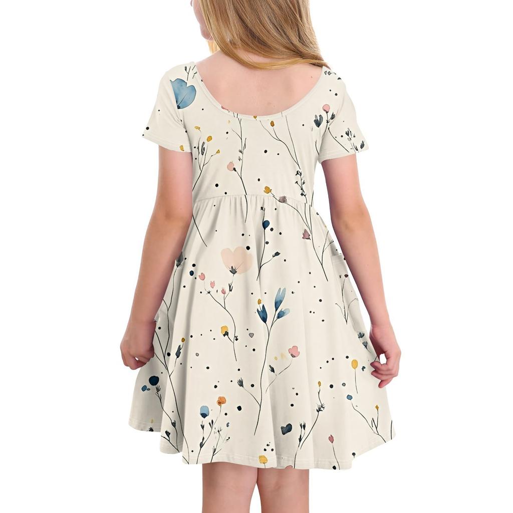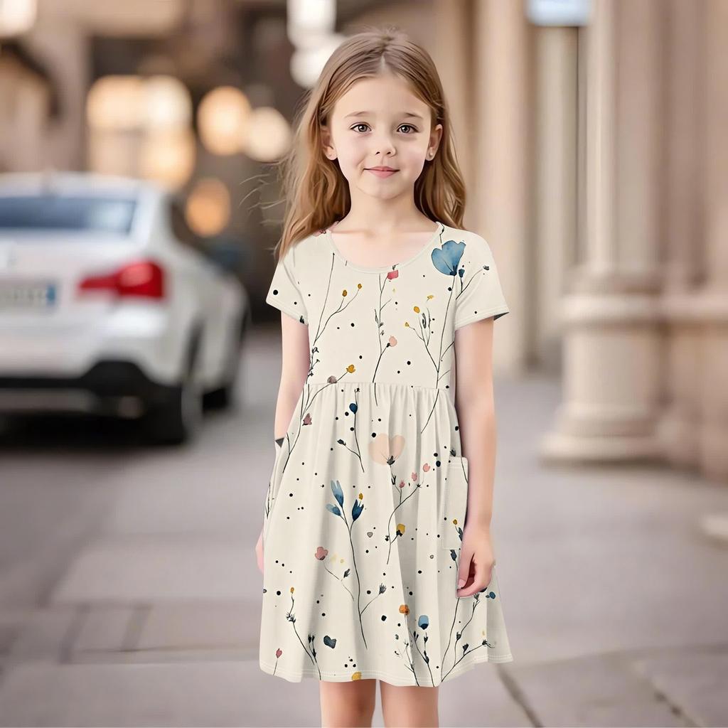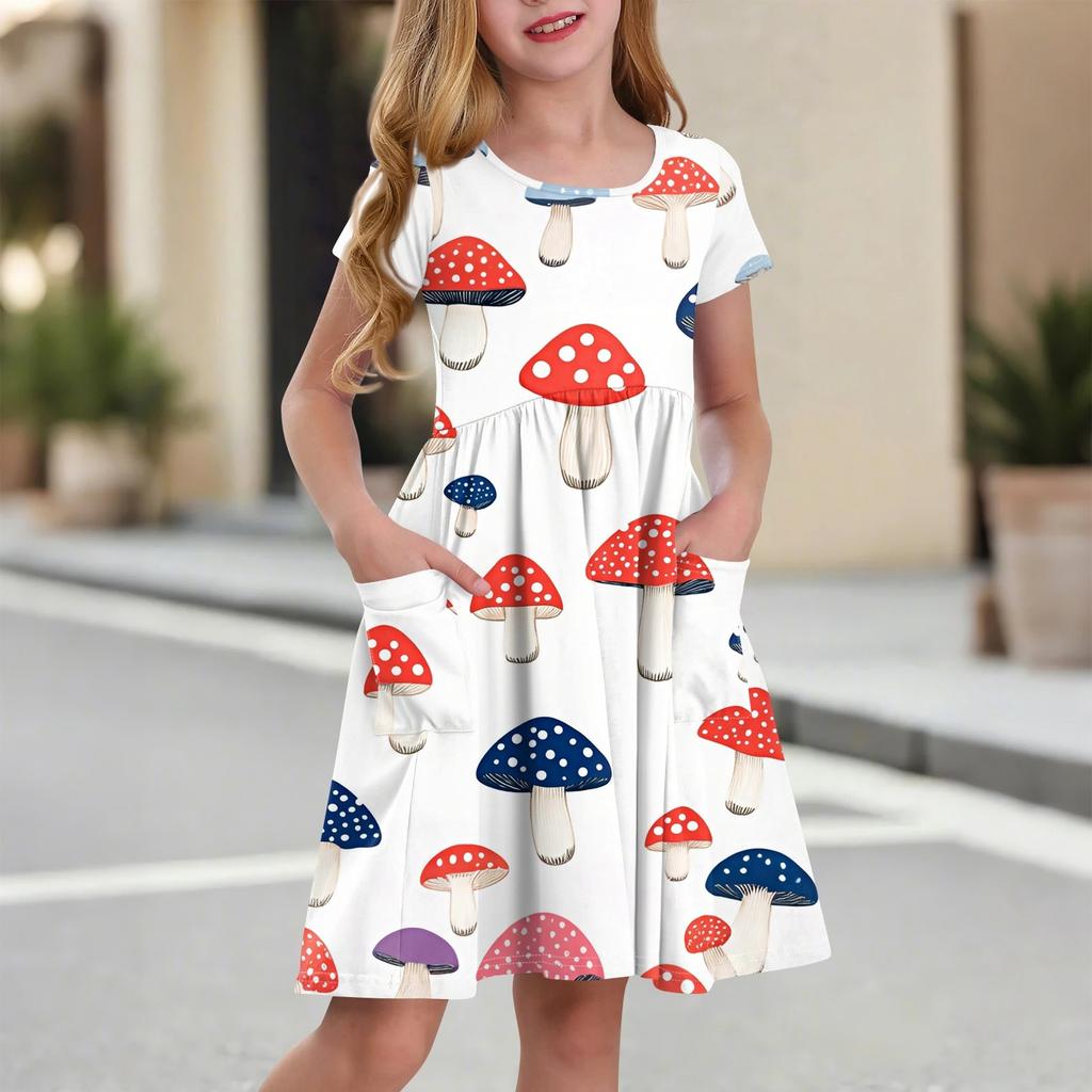 Детская юбка с круглым вырезом и коротким рукавом, платье принцессы, модное повседневное платье с карманами для девочек