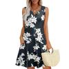 Женские летние платья Свободные сарафаны без рукавов с V-образным вырезом Платье с карманами