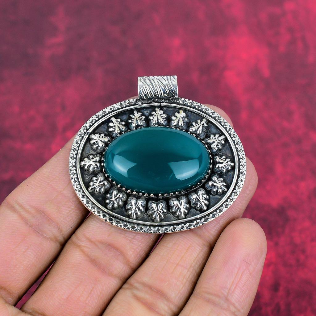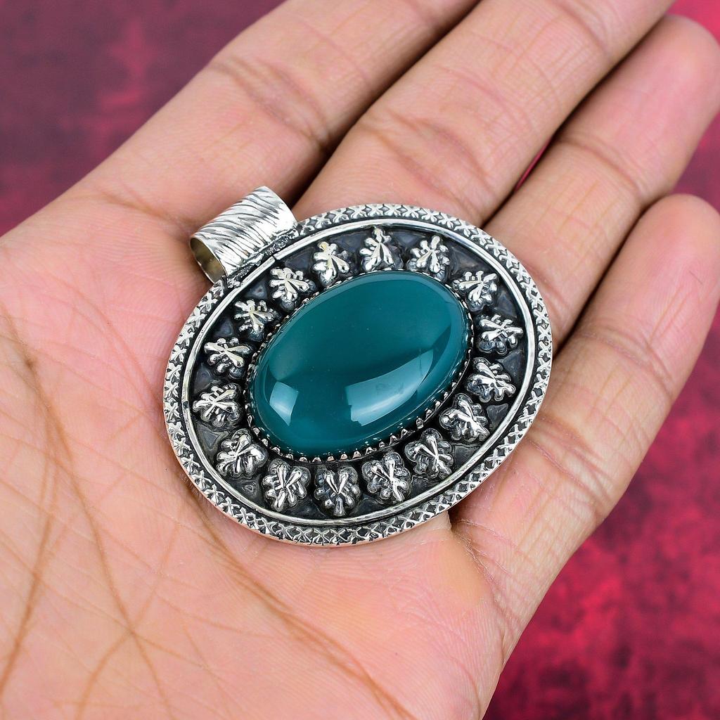 Кулон из зеленого оникса Ювелирные изделия ручной работы из драгоценных камней, кулон из стерлингового серебра 925 пробы, уникальный дизайн ювелирных изделий