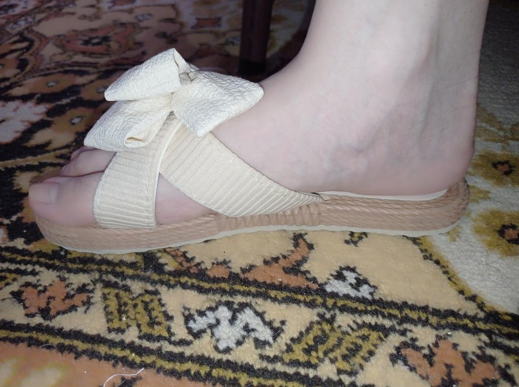 Оказались малы,у меня 38 размер, взяла 39 нужно было 40,обычные резиновые шлепки,что-то такого,такое себе,бантики приклеены, я брала чтобы ходить на пляж и не больше
