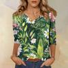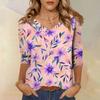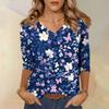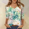 Женские топы, рубашка с рукавом три четверти, свободная повседневная рубашка с V-образным вырезом, футболка с цветочным принтом