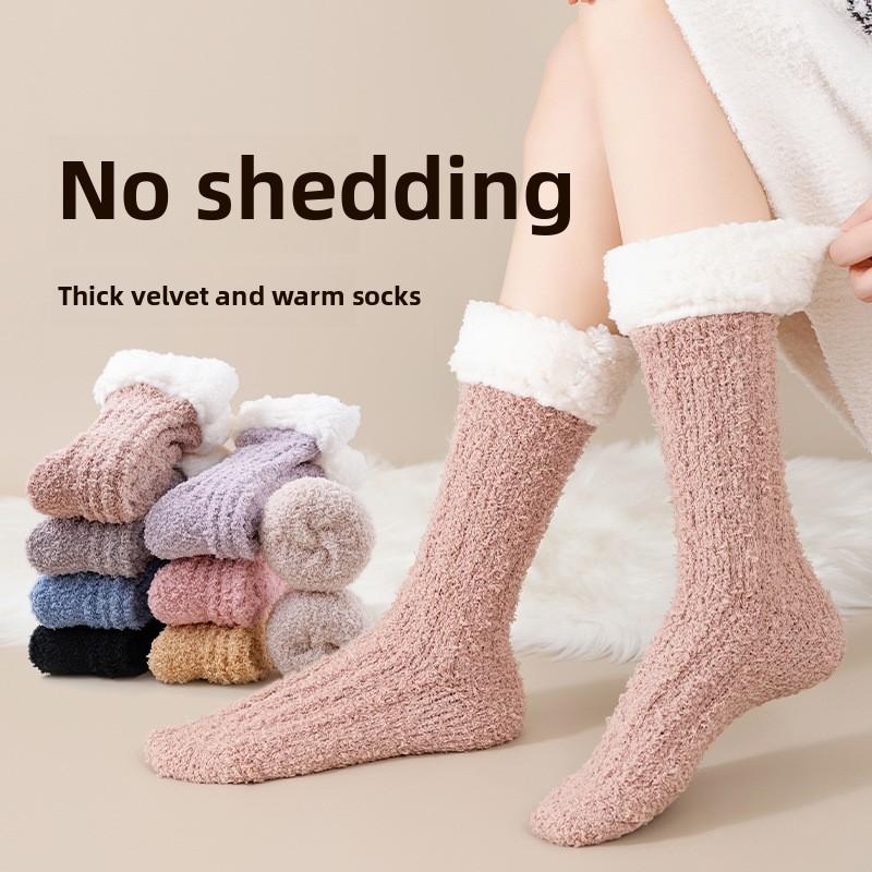 Коралловые бархатные носки женские зимние бархатные толстые теплые носки-тапочки для сна дома плюшевые осенне-зимние снежно-лунные носки