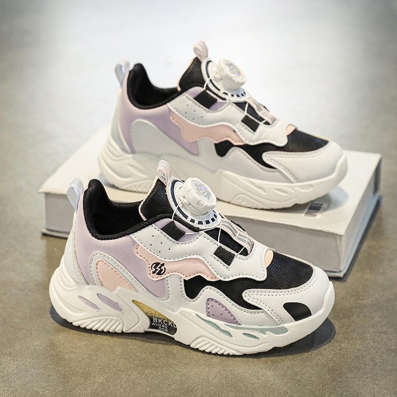 Spring rotating buckle boys' shoes 2025 new children's platform basketball shoes casual trendy shoes breathable mesh sports shoes