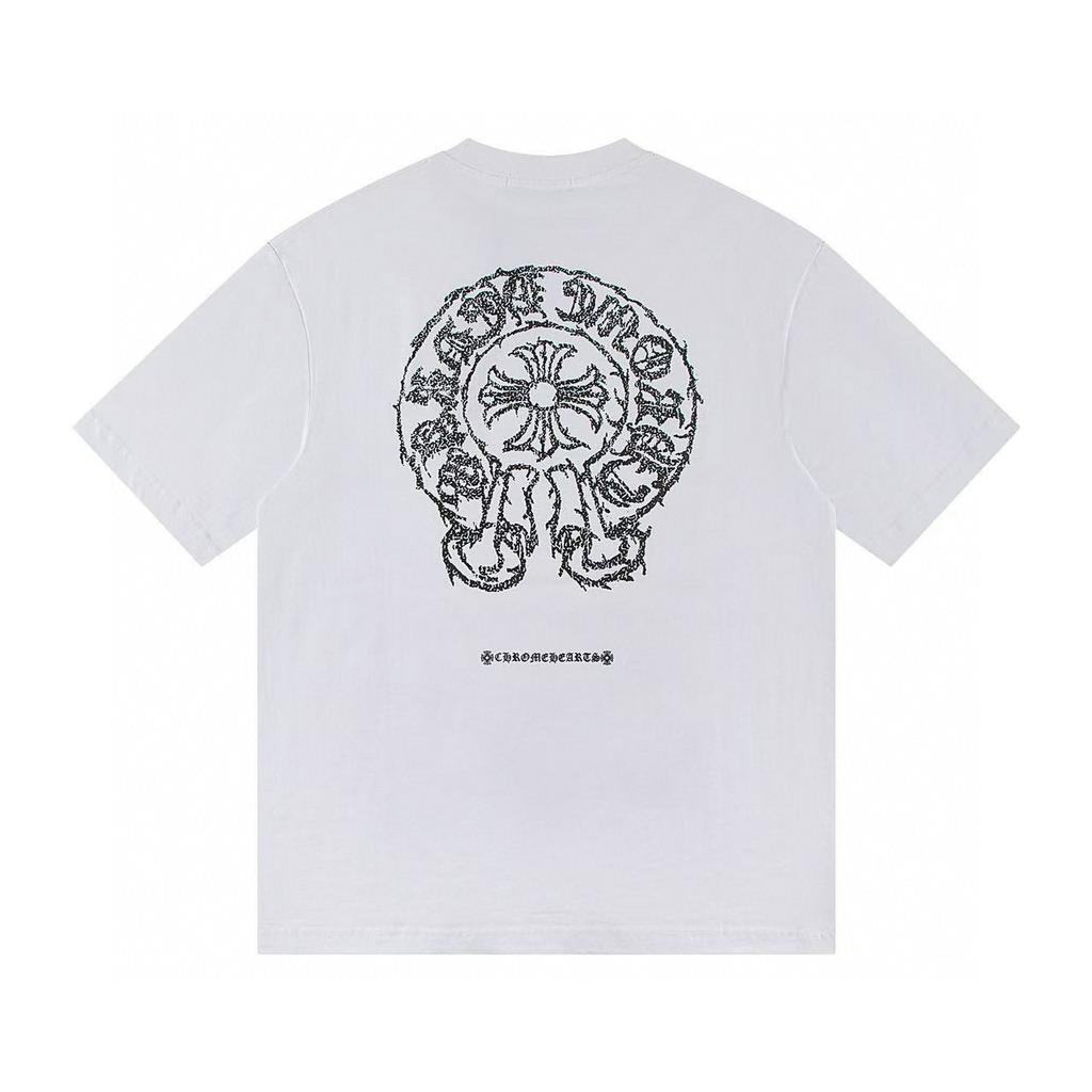 W344 CHROME HEARTS 2025 Летняя новая высококачественная хлопковая свободная футболка с круглым вырезом большого размера для мужчин и женщин, парная футболка — купить товар онлайн с бесплатной доставкой по всему миру!