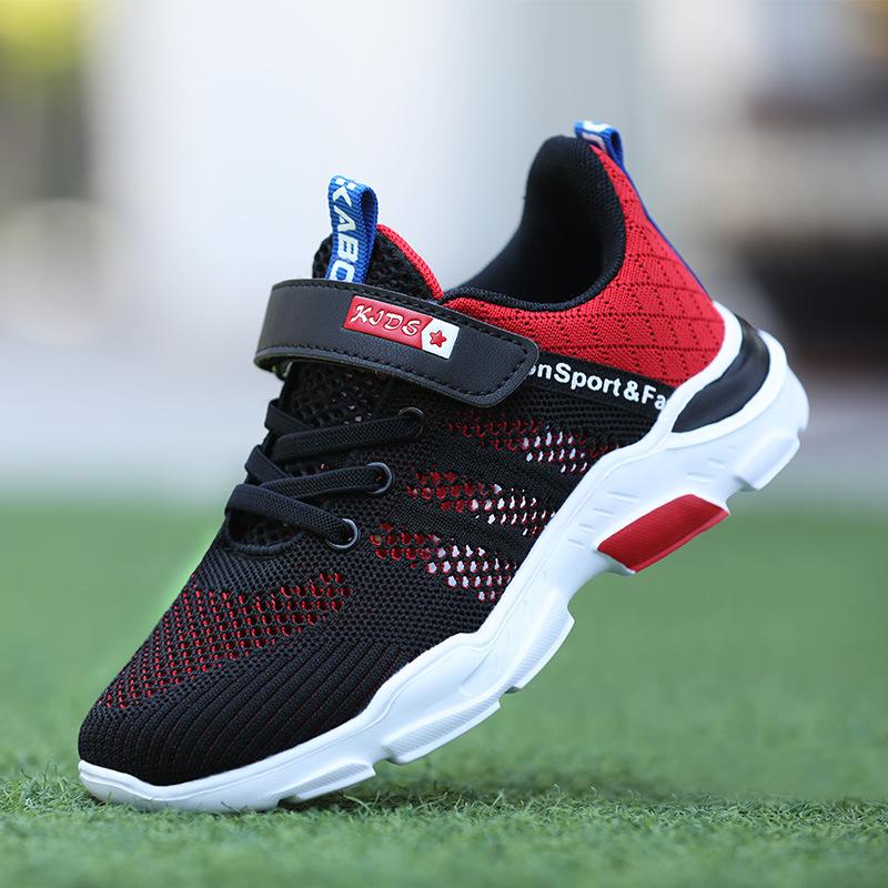 Летние популярные детские туфли на одинарной сетчатой подошве с вырезами, спортивная обувь для мальчиков, из летучего трикотажа, на двойной сетке, для подиума, для детей среднего и старшего возраста